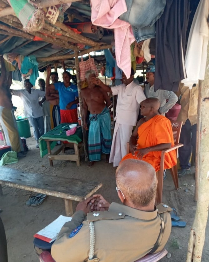 பின்னர் அதற்கு இணங்க மறுப்பு தெரிவித்த பௌத்த பிக்கு தலைமையிலான குழுவினர் எங்களுக்கு இந்த மாவட்டத்தில் தான் காணி வேண்டும் என்று கூறினர். அதன் பின்னர் குறித்த இடத்தில் இருந்து அரச அதிகாரிகள் உள்ளிட்ட அனைவரும் வெளியேறி வந்துவிட்டனர்.