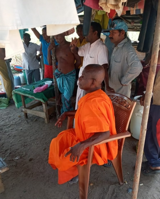 இதன் போது அம்பாறை மாவட்டத்தின் தெய்அத்தகண்டிய பிரதேசத்தில் இருந்து வந்த பௌத்த பிக்கு தலைமையிலான குழுவினர் 106 குடும்பங்களுக்கு 5 ஏக்கர் காணி வீதம் விவசாய செய்கைக்கு தர வேண்டும் நாங்கள் இந்த இடத்தை விட்டு வெளியேற மாட்டோம் என்று கூறியிருந்தனர்.