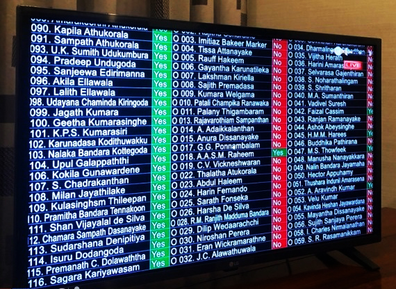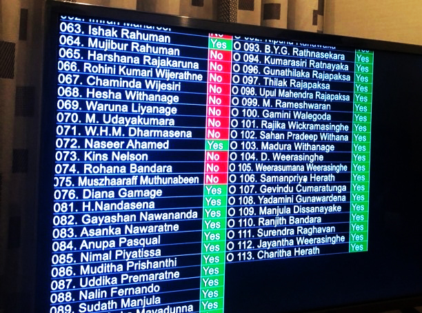 எதிராக 65 உறுப்பினர்கள் வாக்களித்தனர். பல எதிர்க்கட்சி உறுப்பினர்கள் 20ஆவது திருத்தத்தை ஆதரித்து வாக்களித்துள்ளனர்.