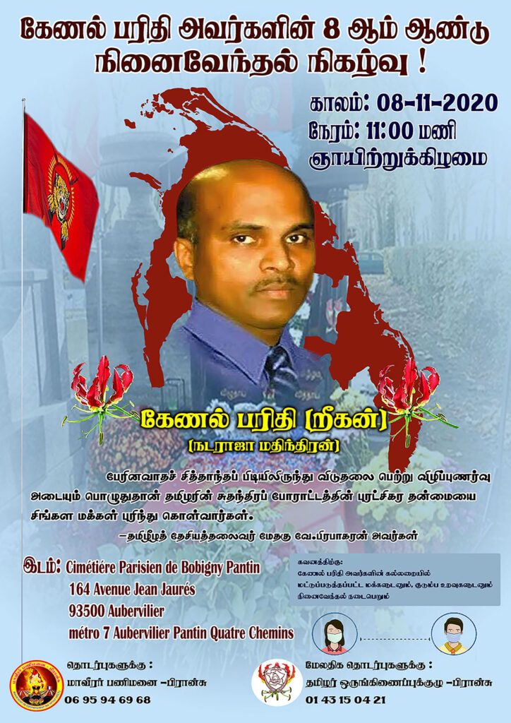 இவரின் நினைவு நாளில் 08.11.2020 ஞாயிற்றுக்கிழமை அவரின் துயிலும் இல்லத்தில் காலை. 11.00 மணிக்கு நினைவேந்தல் நிகழ்வு மட்டுப்படுத்தப்பட்ட மக்களுடனும்,குடும்ப உறவுகளுடனும் நடைபெறும் என்பதை அறியத்தருகின்றோம்.