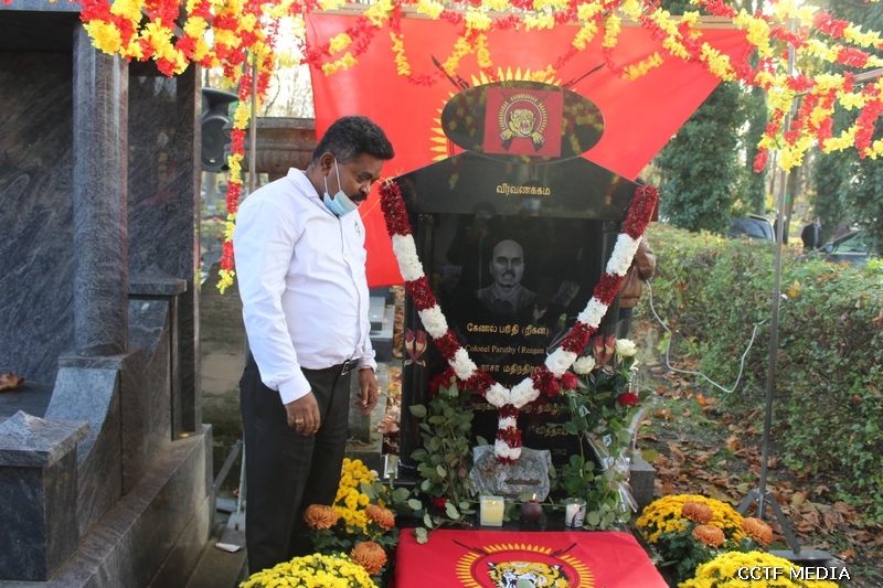 இங்கே உறுதி எடுத்துக்கொள்வோம் என்றார். லாக்கூர்நோவ் நகரசபை உறுப்பினர் அந்தோனி றுசெல் அவர்கள் கேணல் பரிதி அவர்களின் நினைவாக உணர்வோடு பிரெஞ்சுமொழியில் தகவல்களைப் பகிர்ந்திருந்தார். தொடர்ந்து தமிழரின் தாகம் தமிழீழத் தாயகம் என்ற தாரகமந்திரத்துடன் கல்லறைவணக்க நிகழ்வு நிறைவடைந்தது.