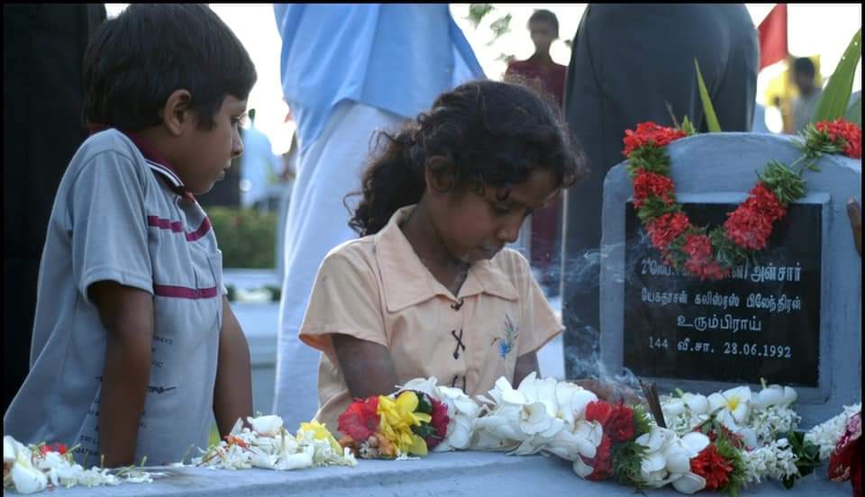 இது என்றென்றும் தியாகத்தின் சின்னமாக, எமது மண்ணில் நிலைபெறும். என்று கூறுகிறது.
