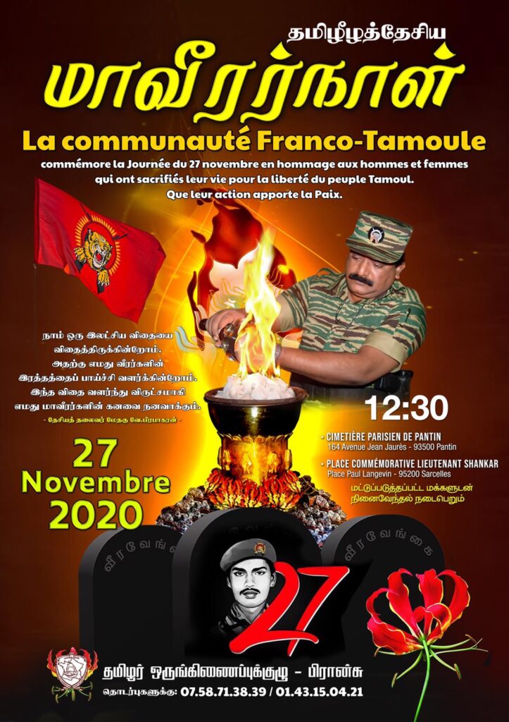 அதேவேளை எமது தேசத்தின் நினைவுகளை எமது மக்களோடு பகிர்ந்து கொள்ளும் நிகழ்வுகளை லாச்சப்பல் பகுதியில் செய்வதற்கு பிராான்சு உள்நாட்டமைச்சின் காவல்துறை அனுமதியை வழங்கியிருப்பதும் குறிப்பிடத்தக்கது. தேசிய தலைவரின் 66 ஆவது அகவை லாச்சப்பல் பகுதியில் கொண்டாடுவதற்கு ஏற்பாடுகள் செய்யப்படுகின்றன. நாளை 26.11.2020 வியாழக்கிழமை பி. பகல் 2.00 மணிமுதல் 5:00 மணிவரை நிகழ்வுகள் நடைபெறவுள்ளது. மக்கள் கோவிட் 19 சுகாதார வழிமுறைகளைப்பேணி முகக்கவசம் அணிந்து (Masque) நோய்க்கிருமி அழிக்கும் மருந்து பாவித்து கலந்துகொள்ளுமாறும் கேட்டுக்கொள்ளப்படுகின்றது.