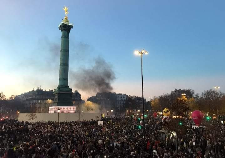 காவல்துறை வன்முறைகள்,அரசின் புதிய பாதுகாப்புச் சட்டங்கள் என்பவற்றைக் கண்டித்து பாரிஸில் சனிக்கிழமை அன்று நடந்த ஆர்ப்பாட்டங்களில் பத்திரிகைப் படப்பிடிப்பாளர் ஒருவர் உட்பட பலர் காயமடைந்துள்ளனர்.