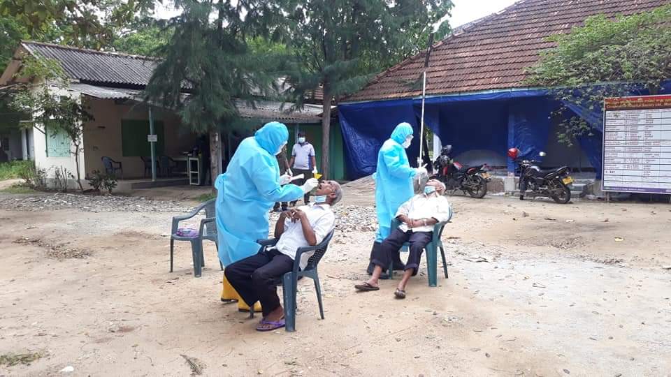 சங்கானை சுகாதார வைத்திய அதிகாரி பணிமனையின் மேற்பார்வை பொதுச் சுகாதாரப் பரிசோதகர் தலைமையில் பொன்னாலை / மூளாய் பொதுச் சுகாதாரப் பரிசோதகர் உட்பட பல பொதுச் சுகாதார பரிசோதகர்கள் இணைந்து தனிமைப்படுத்தப்பட்டவர்களிடம் இன்று (01) காலை மூளாய் கூட்டுறவு வைத்தியசாலையில் வைத்து மாதிரிகளை எடுத்தனர்.