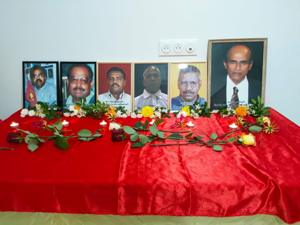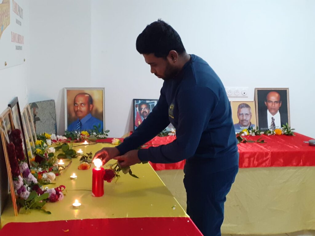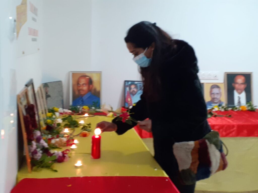 பொதுச்சுடரினை இந்திய இராணுவத்துடன் 03.07.1988 அன்று இடம்பெற்ற மோதலில் வீரச்சாவைத் தழுவிக்கொண்ட லெப்.மரியா அவர்களின் சகோதரரும், ஊடக மையத்தின் தலைவருமான திரு. சுமந்திரன் அவர்கள் ஏற்றி வைத்தார்.