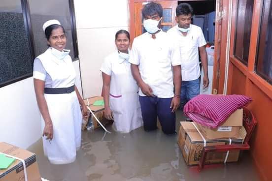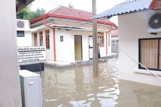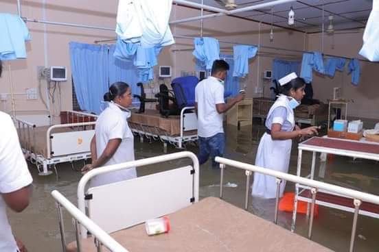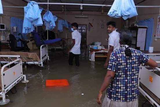 யாழ் நகரில் சரியான வடிகால் அமைப்பு வசதியின்மையால் போதனா வைத்தியசாலையின் சில விடுதிக் கட்டடங்களின் பகுதிகள் நீரில் மூழ்கின.