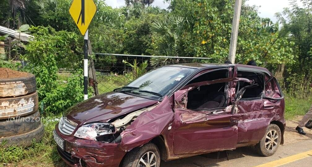 யாழ்ப்பாணத்திலிருந்து சாவகச்சேரி நோக்கியப் பயணித்த மகிழுந்து ஒன்றின் ரயர் வெடித்து, திருத்த வேலைக்காக நிறுத்தி வைக்கப்பட்டிருந்த எரிபொருள் தாங்கி வாகனம் மீது மோதி விபத்துக்குள்ளானது.