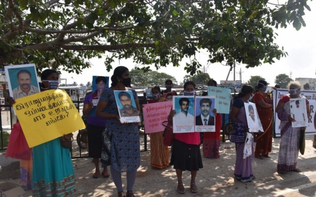 இதன் போது போராட்டத்தில் ஈடுபட்ட காணாமல் ஆக்கப்பட்டவர்களின் உறவினர்கள் ‘மறைக்கப்பட்ட மனிதர்கள் எங்கே’?, இராணுவத்திடம் ஒப்டைக்கப்பட்ட உறவுகள் எங்கே? உள்ளிட்ட வாசகங்கள் எழுதப்பட்ட பதாதைகளை ஏந்தியாவாறு போராட்டத்தில் ஈடுபட்டனர்.