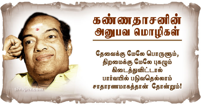 ‘இது ஒரு தொழிலே இல்லை. மற்ற தொழிலில் சம்பளம் கொடுப்பவன் முதலாளி, சம்பளம் வாங்குபவன் தொழிலாளி. இதில் நேர்மாறு. இந்த அவல நிலைக்குக் காரணம் ஜனங்கள் தான். நட்சத்திர மோகம் குறைந்தால்தான் சினிமாத் தொழில் உருப்படும்!’ என்கிறார் கண்ணதாசன்.