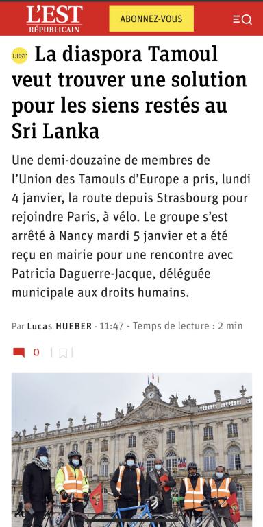 மேலும் Est Républicain ஊடகத்தினுடன் கலந்துரையாடலினை மேற்கொண்டு Vitry le François மாநகரசபையினைநோக்கி காவல்துறையின் பாதுகாப்புடன் விரைந்தது.
