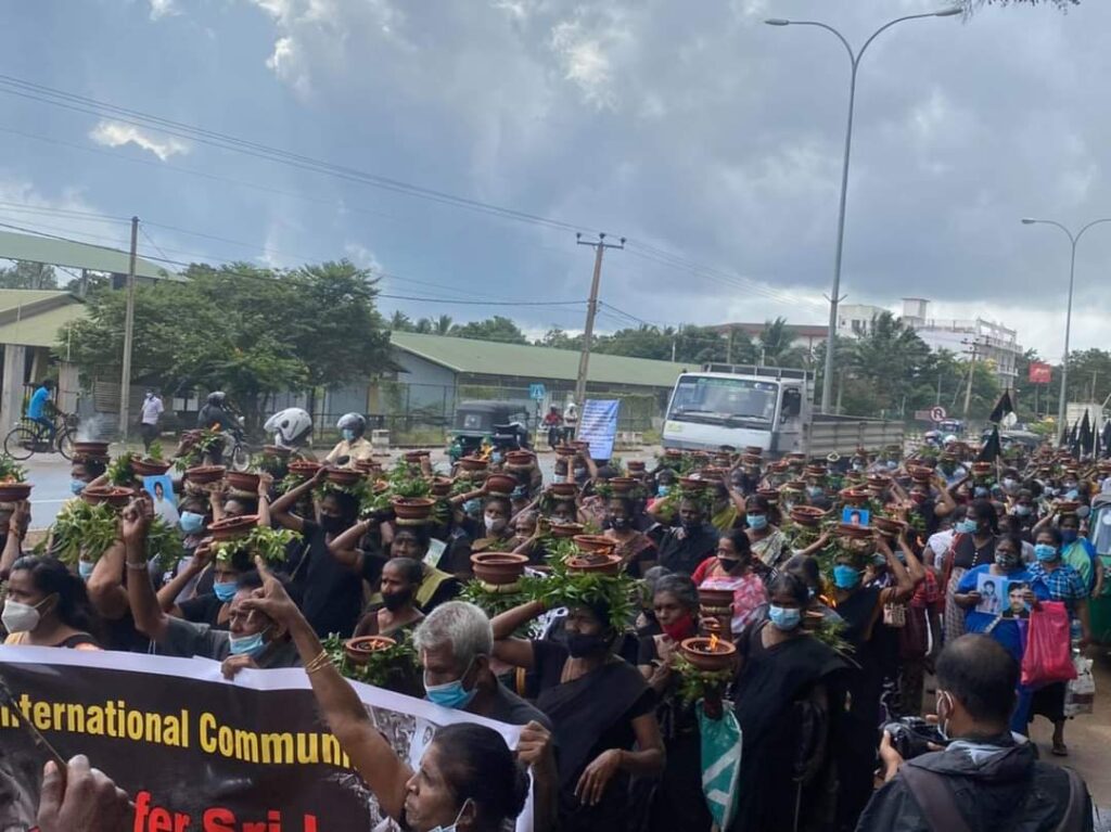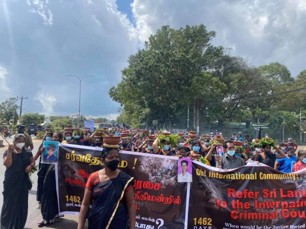 ஐ.நா ஆணையாளர் தனது அறிக்கையில் இலங்கையை சர்வதேச குற்றவியல் நீதிமன்றில் (ICC) பாரப்படுத்துவது தொடர்பில் குறிப்பிட்டுள்ளார். இதனை நாம் வரவேற்பதுடன், இணைத்தலைமை நாடுகளான பிரித்தானியா, கனடா, ஜெர்மனி, மொண்டினிகிக்றோ, வட மாசடோனிய ஆகிய நாடுகளிடம், நீங்கள் சமர்ப்பிக்கும் வரைவில் சர்வதேச குற்றவியல் நீதிமன்றதிற்கான (ICC) பரிந்துரையை உட்படுத்துமாறு பாதிக்கப்பட்ட தரப்பாக வேண்டி நிற்கின்றோம். கடந்த பெப்ரவரி 3ம் திகதி தொடங்கி 7ம் திகதி முடிவுற்ற பொத்துவில் தொடக்கம் பொலிகண்டி வரை மக்கள் எழுச்சிப் பேரணியில் கலந்து கொண்ட சுமார் ஒரு இலட்சத்திற்கும் மேற்பட்ட மக்கள் கூட்டம் சிறிலங்காவை சர்வதேச குற்றவியல் நீதிமன்றுக்குப் பாரப்படுத்துவதை வலியுறுத்தியவர்களே. எனவே இலங்கையை சர்வதேச குற்றவியல் நீதிமன்றில் பாரப்படுத்தி எமக்கான நீதியைப் பெற்றுத்தர சர்வதேசமும் ஐ.நாவும் விரைந்து செயற்படவேண்டும் என்பதே எமது வேண்டுகோள். எமது உறவுகளைத் தேடும் போராட்டம் கூட அடக்குமுறைக்குள் உள்ளாக்கப்பட்டு மன உளைச்சலுக்குள்ளாகியிருக்கின்றோம். கோவிட்-19ஐக் காரணம் காட்டி எம்மை ஒன்றுகூட விடாது தடுக்கின்றனர். மீறினால் தனிமைப்படுத்தல் என்று அச்சுறுத்துகின்றனர். நினைவுகூரல், தன்னெழுச்சிப் போராட்டங்களுக்குக் கலந்துகொள்ள தடைவிதித்து நீதிமன்ற உத்தரவைப் பெற்று வழங்குகின்றனர். அதற்கு மேலாக காரணம் எதுவுமின்றி பயங்கரவாதத் தடுப்புப் பிரிவினர் கொழும்புக்கு விசாரணைக்கு வருமாறு பணிக்கின்றர்கள். இதனாலே எமக்கு மன உளைச்சல் அதிகரிக்கின்றது. இதற்கெல்லாம் காரணமாக இருப்பது இந்தப் போராட்டத்தைப் பயங்காட்டி நிறுத்த வேண்டும் என்ற நோக்கமே. தொடர்ச்சியாக இராணுவமயப்படும் தற்போதைய சிறிலங்கா ஆட்சி அதிகாரம், சிவில் நிர்வாகங்களை இனவழிப்பிலும், போர்குற்றங்களிலும் ஈடுபட்ட இராணுவ அதிகாரிகளை கொண்டு நிரப்பி வருகின்றது. இதன் மூலம் தமிழ் மக்களின் வாழ்வியலுக்கு தொடர்ச்சியாக அச்சுறுத்தல்களை விடுப்பத்துடன் ஜனநாயக வெளிகளை ஒடுக்கி வருகின்றது. உதாரணமாக பொதுமக்கள் பாதுகாப்பு அமைச்சரான முன்னாள் கடற்படை அட்மிரல் பொது ஊடகங்களில் தமிழர் விரோத இனவாதத்தை கக்குவதுடன், ஜனநாயக போராட்டங்களில் ஈடுபடும் தமிழர்களை மட்டும் நோக்கி நேரடியாகவே அச்சுறுத்தல் விடுகின்றார். ஆகவே இவரால் வழிநடத்தப்படும் சிறிலங்கா போலீசாரும், மற்றய அரச படைகளும் எவ்வாறு நடந்து கொள்வார்கள் என்பதை சர்வதேசம் உன்னிப்பாக கரிசனை செலுத்த வேண்டும்.