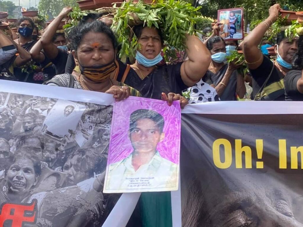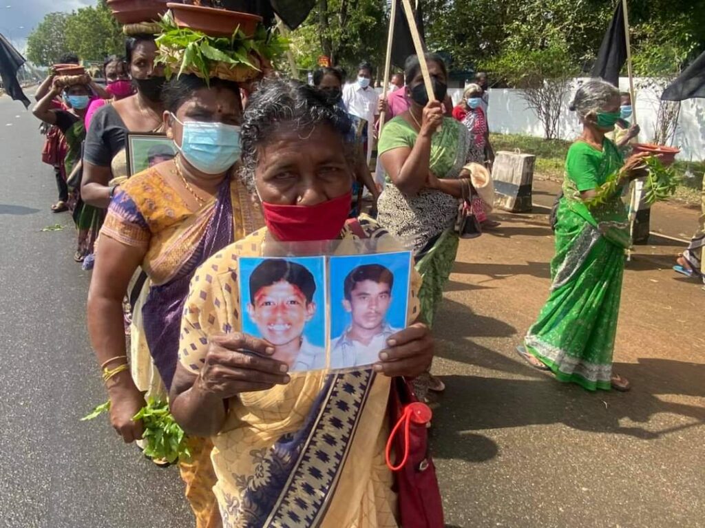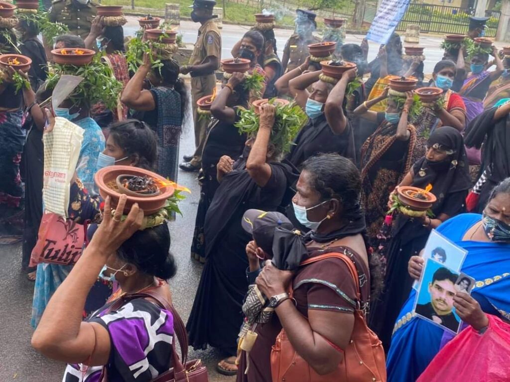 வடக்குக் கிழக்கு வலிந்து காணாமல் ஆக்கப்பட்டோரின் உறவினர்களாகிய நாம் சர்வதேசத்திடம் நீதி கேட்டுப் போராடத் தொடங்கிய போராட்டம் இன்று ஐந்தாவது வருடத்தை எட்டுகின்றது. 1462 நாட்காளாக தொடர்ந்து போராடும் நாங்கள் எங்களுடன் சேர்ந்து போராடத்தொடங்கிய 83 தாய் தந்தையினரின் இறப்பையும் தாங்கியவண்ணம்; தொடர்கின்றது. இப்போராட்டமானது எங்களுக்கு நீதி கிடைக்கும் வரை அல்லது எமது இறப்பு வரை தொடரும்.
