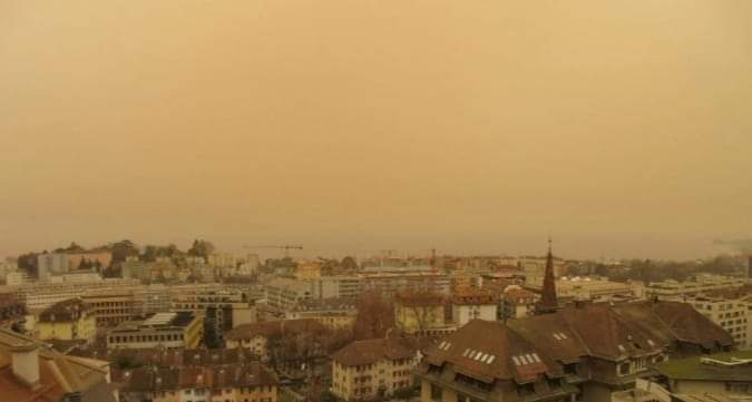 ஆபிரிக்காவின் சஹாரா பாலைவனத் தில் இருந்து மணல் துகள்களை அள்ளி வருகின்ற காற்று மத்தியதரைக் கடலைக் கடந்து ஐரோப்பிய வான்பரப்பில் கலக்கின்றது. இதனால் காலை வேளைகளில் வானம் செம்மஞ்சள் மற்றும் செவ்வாய்க் கிரகத்தின் சிவப்பு வர்ணத்தை ஒத்த நிறங்களில் காட்சி கொடுக்கின்றது.