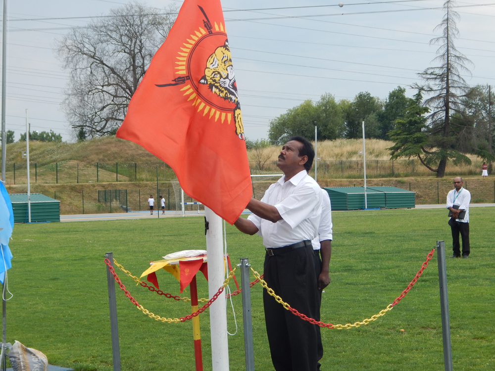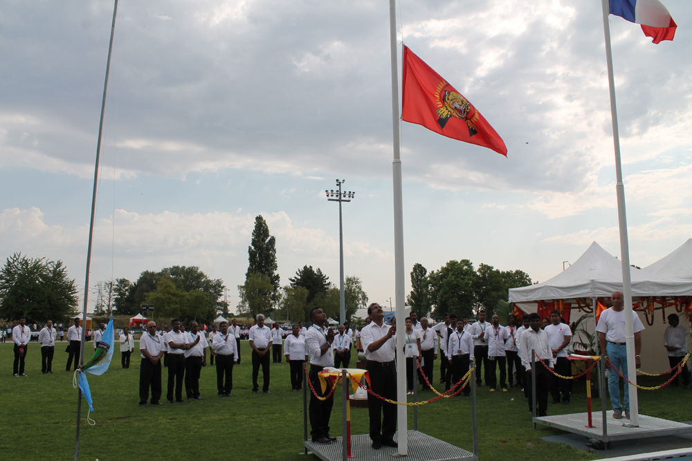 அகவணக்கத்தைத் தொடர்ந்து பிரெஞ்சுக் கொடியினை சார்சல் மாநகர விளையாட்டுத்துறைப் பொறுப்பாளர் திரு. பாஸ்குப்தா அவர்கள் ஏற்றிவைக்க, தமிழீழத் தேசியக்கொடியினை ஓள்னேசுபுவா தமிழ்ச் சங்கத் தலைவர் திரு. விஸ்வநாதன் அவர்கள் ஏற்றிவைத்தார்.