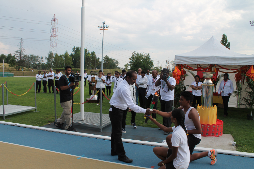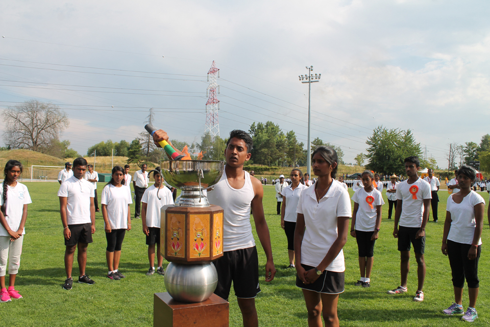 சமநேரத்தில் இல்லங்களின் தலைவர்கள் இல்லக் கொடிகளை ஏற்றிவைக்கப்பட்டதைத் தொடர்ந்து ஒலிம்பிக் சுடரினை தமிழர் இல்லமெய்வல்லுநர் போட்டி முகாமையாள திரு.இராஜலிங்கம் அவர்களிடமிருந்து 2014 ஆம் ஆண்டுக்கான சிறந்த விளையாட்டு வீரன் செல்வன் சிறிதரன் ஜனகரன், சிறந்த விளையாட்டு வீராங்கனை செல்வி சோதிராசா சோபிகா ஆகியோர் பெற்று வீரர்களுடன் மைதானத்தைச் சுற்றிவந்து ஒலிம்பிக் சுடர் ஏற்றப்பட்டது.