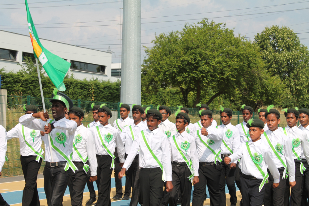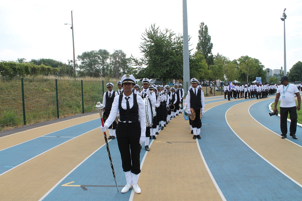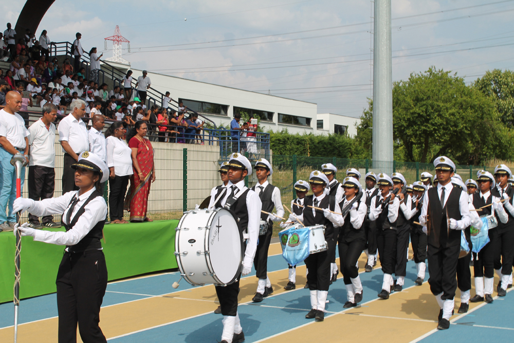 பிரதம விருந்தினர்கள், பிரமுகர்கள் அணிவகுப்பு மரியாதையை ஏற்க, சீரான கட்டளை பின்பற்றி முழவு வாத்திய அணிவகுப்பைப் பின்தொடர்ந்து இல்ல மாணவர்களின் அணிநடை மைதானத்தை வலம்வந்தது. இது கண்கொள்ளாக் காட்சியாக அமைந்திருந்தது.