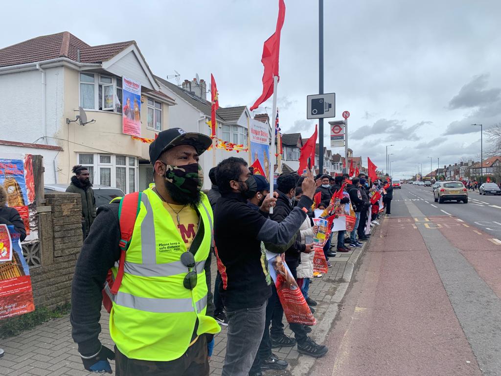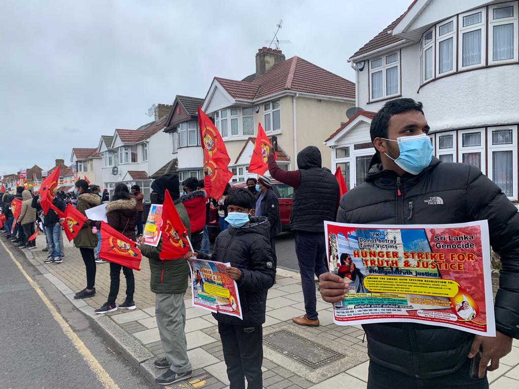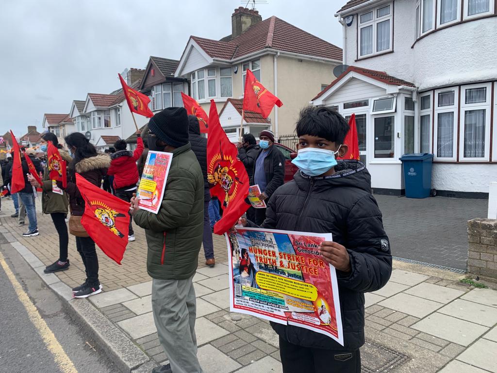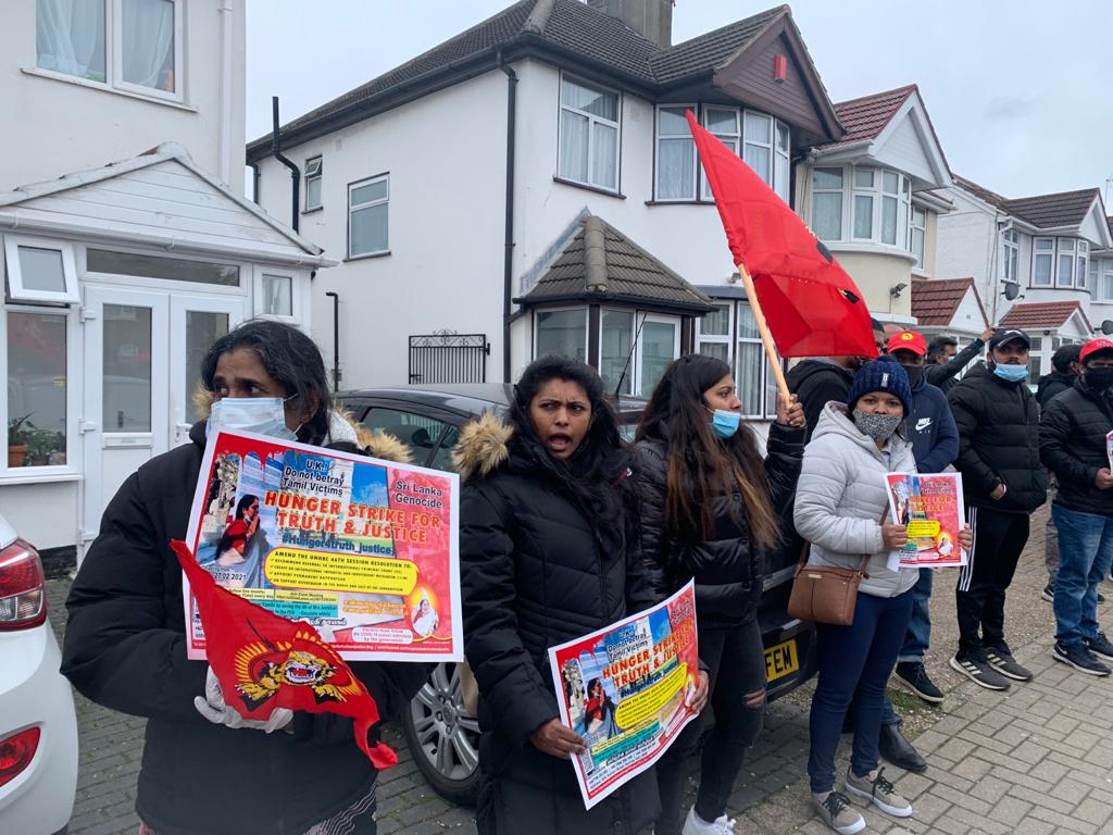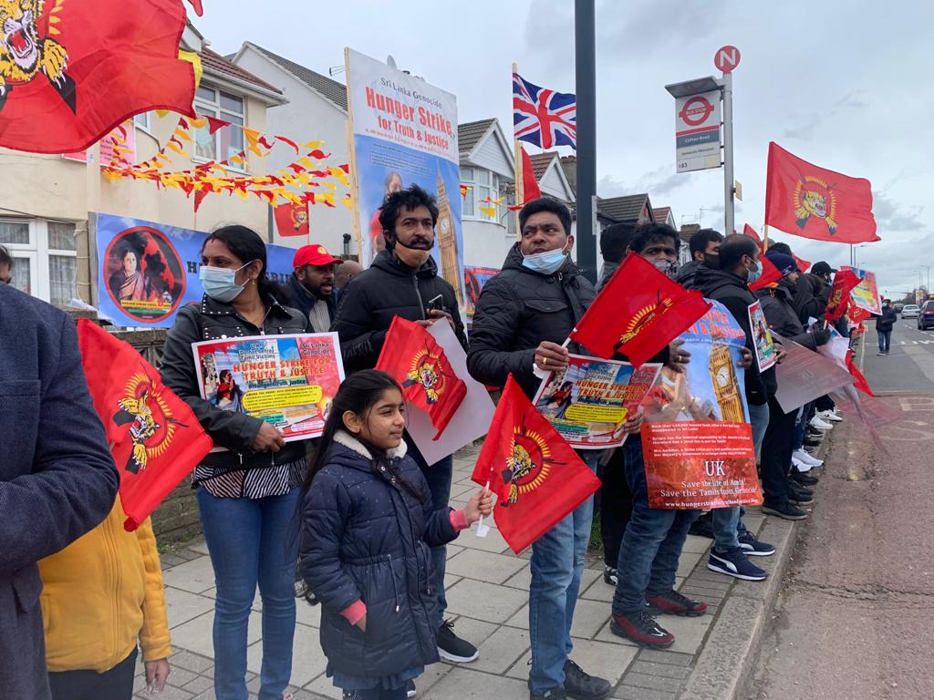 தமிழினத்துக்கான நீதியை வேண்டி இன்று 14.03.2021 ஞாயிற்றுக்கிழமை 16 ஆவது நாளாக உண்ணாவிரதப்போராட்டத்தில் ஈடுபட்டுவரும் அம்பிகை செல்வகுமாரை காப்பாற்றக்கோரி இன்று அவரது வீட்டிற்குமுன் பெரும் திரளான தமிழர்கள் ஆர்ப்பாட்டத்தில் ஈடுபட்டனர்.