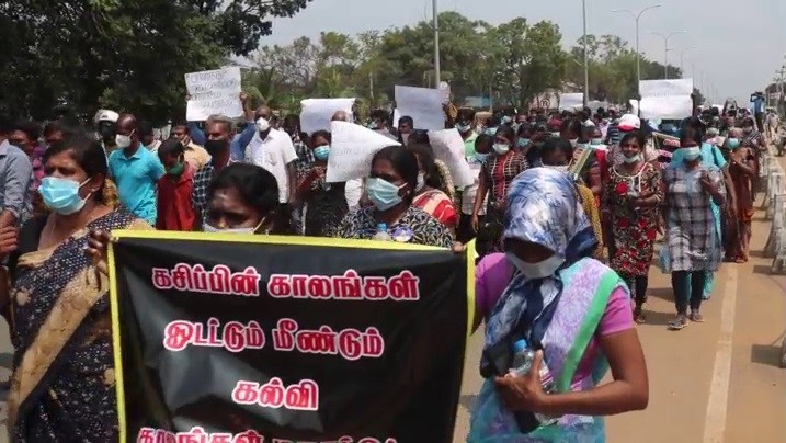 கிளிநொச்சி – வட்டக்கச்சிப் பகுதியில் கடந்த 10ம் திகதி கொலை செய்யப்பட்ட அருளம்பலம் துஷ்யந்தனின் கொலைக்கு நீதி கோரியும், கொலை செய்யபட்டவரின் குடும்பத்தினரை சிறிலங்கா காவல்துறையினர் தாக்கியதைக் கண்டித்தும், சட்ட விரோத செயல்களை எதிர்த்தும் இன்று (17) புதன்கிழமை போராட்ட பேரணி முன்னெடுக்கப்பட்டது.