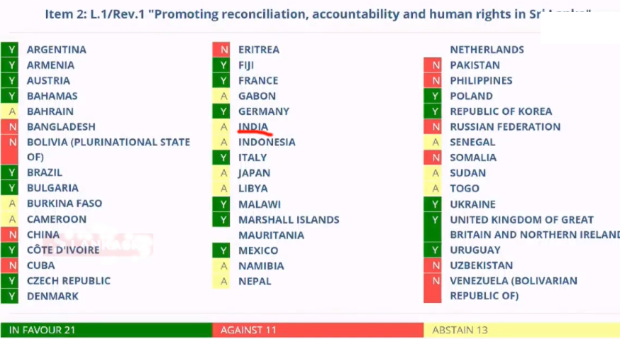ஐ.நாவின் ஜெனிவா கூட்டத் தொடரில் இணை அனுசரனை நாடுகள் முன்வைத்த இலங்கைக்கு எதிரான தீர்மானத்துக்கு 22 நாடுகள் ஆதரவாக வாக்களித்ததன் மூலம் தீர்மானம் நிறைவேற்றப்பட்டுள்ளது.