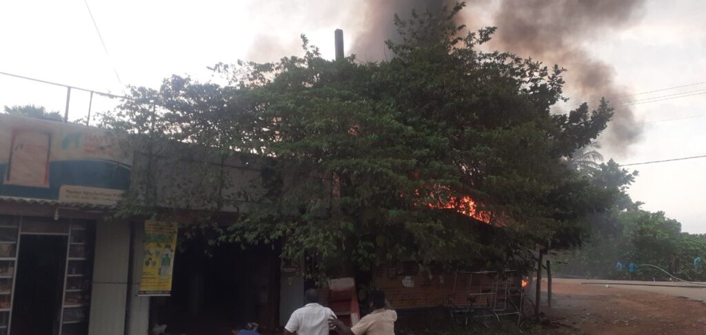 முல்லைத்தீவு முத்தையன்கட்டு இடதுகரை பகுதியில் இடம்பெற்ற தீ பரவலில் மூன்று கடைகள் முற்றாக எரிந்து சேதமடைந்துள்ளன.