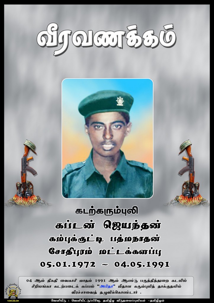 பல வருடங்களாக எமது போராளிகள் பலரின் உயிர்களை விழுங்கக் காரணமாக இருந்த ஒரு கடலரக்கனைக் கொன்று சிதம்பரமும், ஜெயந்தனும் வீரசாதனை புரிந்துவிட்டார்கள். ஆம் 1991 வைகாசி 4ஆம் நாள் எஸ்.ஐ.என்.எஸ் அபிதா என்ற கப்பல் கடற்கரும்புலிகளான சிதம்பரம், ஜெயந்தன் ஆகிய வீரர்களால் தாக்கி மூழ்கடிக்கப்பட்டது. இது சிறிலங்காக் கடற்படைக்கு மட்டுமல்லாது அரசிற்கும் ஒரு பெரும் நெருக்கடியைக் கொடுத்தது. இது அப்போது பாதுகாப்பு அமைச்சராக இருந்த ரஞ்சன் விஜயரத்தினவிற்கு விழுந்த அடியாகக் கொள்ளலாம்.