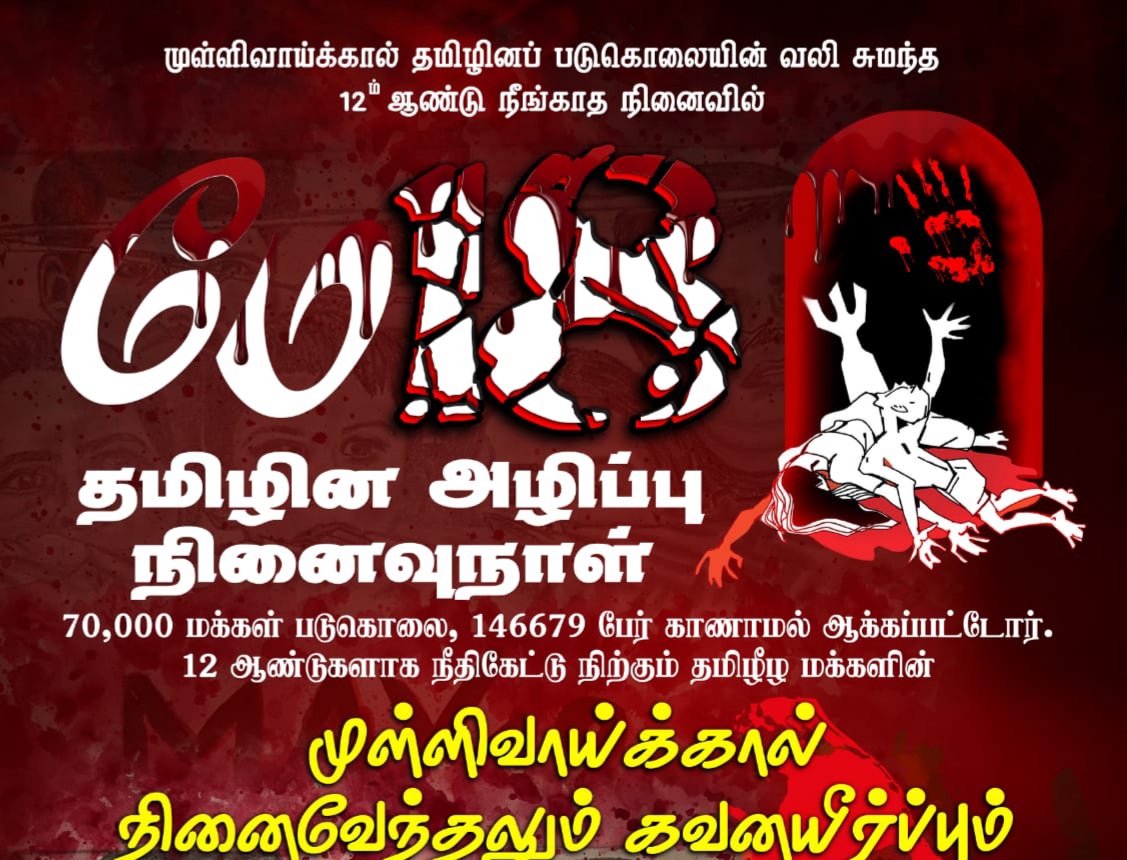 எதிர் வரும் 18.05.2021 செவ்வாய்க்கிழமை மே 18 ( முள்ளிவாய்ககால் ) நினைவேந்தலும், கவனயீர்ப்பும் Place de la Bastilleலில் பிற்பகல் 15.00 மணிக்கு ஆரம்பிக்கப்படவுள்ளது. அனைத்து மக்களையும் நேரடியாக place de la Bastille க்கு வருமாறு கேட்டுக்கொள்கின்றோம்