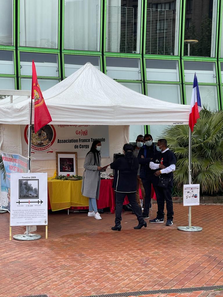 பிரான்சு சேர்ஜி பொந்துவாஸ் நகரில் இன்று 17.05.2021 திங்கட்கிழமை பி.பகல் மே 18 தமிழின அழிப்புக் கவனயீர்ப்புப் போராட்டம். உள்நாட்டு அமைச்சகத்துக்கு முன்னால் இடம்பெற்றது.