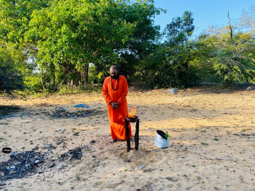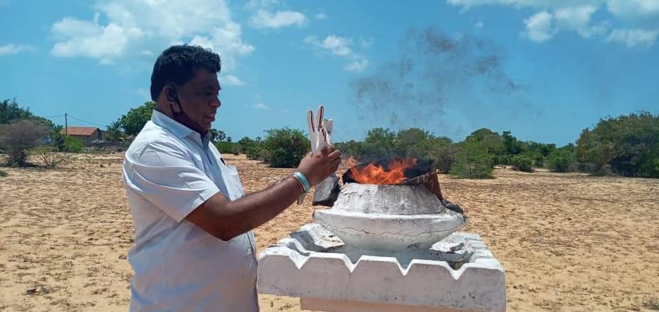 முள்ளிவாய்க்கால் தமிழின பேரவலத்தின் 12 ஆம் ஆண்டு நினைவேந்தல் நாளான இன்று பலத்த பாதுகாப்பு கெடுபிடிகளுக்கு மத்தியில் முல்லைத்தீவு முள்ளிவாய்க்கால் பகுதியில் சிவகுரு ஆதீன குரு தவத்திரு வேலன் சுவாமிகள் இறுதிப்போரில் உயிரிழந்த உறவுகளுக்கு சுடரேற்றி அஞ்சலி செலுத்தியுள்ளார்.