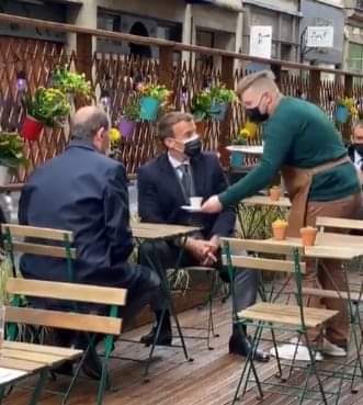 எலிஸே மாளிகை அருகே உணவகம் ஒன்றின் வெளி இருக்கையில் பிரதமர்