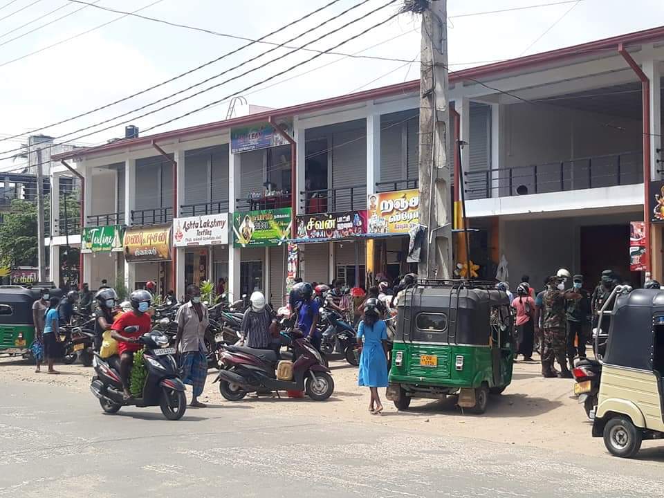 சங்கானையில் வர்த்தக நிலையங்கள், வங்கிகளுக்கு முன்னால் அதிகளவான மக்கள் கூடியுள்ளனர்.