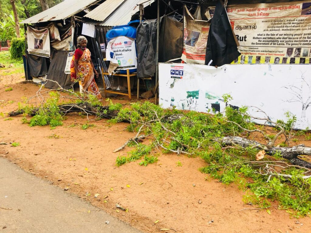 குறித்த போராட்டம் இடம்பெற்றுவரும் பகுதியில் உள்ள பழமையான மரத்தின் கிளையே கடுமையான காற்றினால் இன்று முறிந்துவிழுந்துள்ளது.