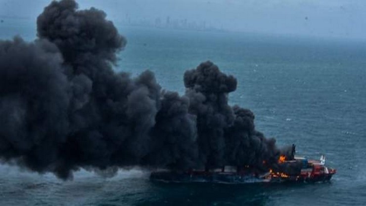 இந்நிலையிலேயே பல மணி நேர போராட்டத்தின் பின்னர் கடந்த 21 ஆம் திகதி தீ கட்டுப்பாட்டுக்குள் கொண்டு வரப்பட்டிருந்தது. எவ்வாறாயினும் இலங்கையின் கடல் பிராந்தியத்தில் நிலவும் சீரற்ற காலநிலை ( பலத்த காற்றுடன் கூடிய நிலை) காரணமாக, நேற்று குறித்த கப்பலில் தீ மிக வேகமாக பரவ ஆரம்பித்துள்ளதாக சமுத்திர சூழல் பாதுகாப்பு அதிகார சபையின் தலைவர் சட்டத்தரணி தர்ஷனி லஹந்தபுர குறிப்பிட்டார். இவ்வாறு மிக மோசமாக தீ பரவி வரும் நிலையில், குறித்த கப்பலில் இருந்த 8 கொள்கலன்கள் கடலுக்குள் வீழ்ந்துள்ளதாகவும் அவர் கூறினார்.