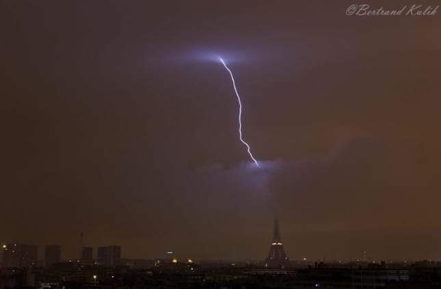ஈபிள் கோபுரத்தை மின்னல் தாக்கியதை