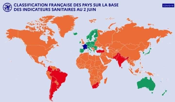 முடியும். வெளிநாட்டு அமைச்சு உலக நாடுகளை அவற்றின் வைரஸ் பரவல் நிலைவரத்தின் அடிப்படையில் பச்சை, செம்மஞ்சள், சிவப்பு (green, orange, red) என்ற மூவர்ணங்களில் பிரித்து வரை படத்தை வெளியிட்டுள்ளது. (பார்க்க படம்). நிலைமைகளைப் பொறுத்து