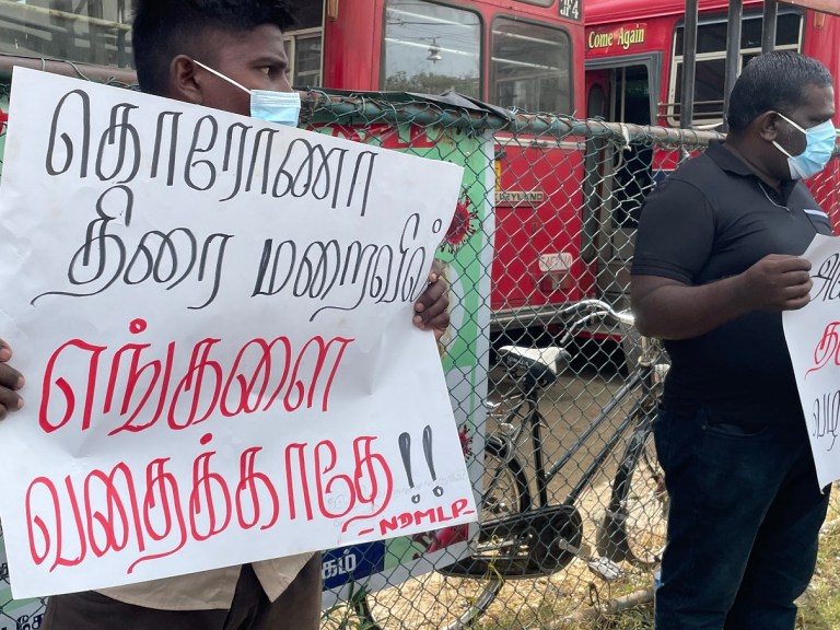 போராட்டத்தில் ஈடுபட்டவர்கள் அனைத்து அரசியல் கைதிகளையும் உடன் விடுதலை செய், கொரோனா திரைமறைவில் எங்களை வதைக்காதே, அனைவருக்கும் தடுப்பூசி வழங்கு, பாதுகாப்பு வழிகளைச் செய்து பாடசாலைகளைத் தொடங்கு, உணவுப் பொருள்கள் – எரிபொருள்களின் விலையை உடனே குறை!, விவசாயிகள் – மீனவர்கள் எதிர்கொள்ளும் நெருக்கடிக்குத் தீர்வு காண்!, மற்றும் நிறுத்து நிறுத்து விலை உயர்வை நிறுத்து உள்ளிட்ட வாசகங்கள் எழுதப்பட்ட பதாதைகளை ஏந்தியவாறு போராட்டத்தில் ஈடுபட்டிருந்தனர்.