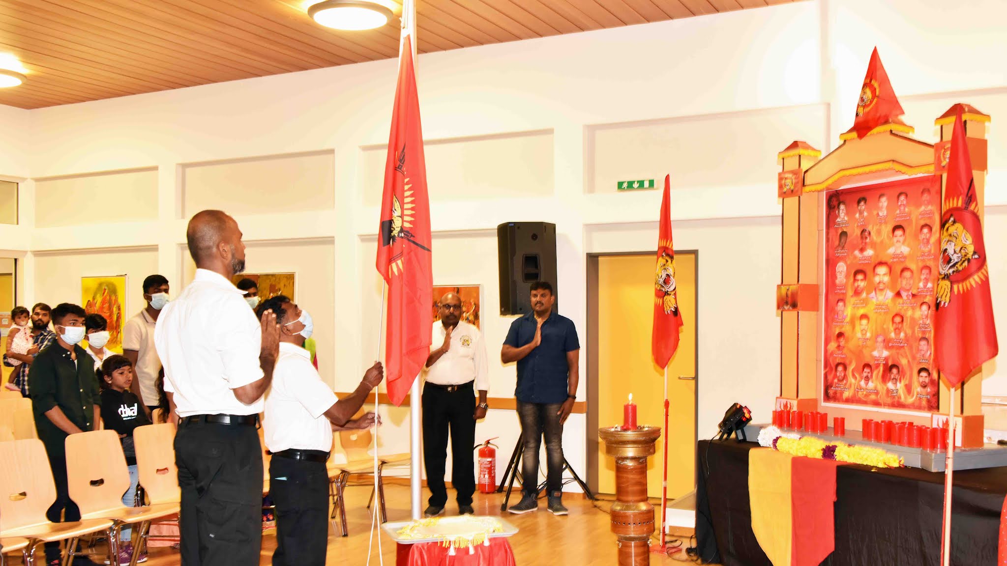 நிகழ்வின் இறுதியாக நம்புங்கள் தமிழீழம் நாளை பிறக்கும் என்ற பாடலை இசைக்கலைஞர்களுடன் மக்கள் எல்லோரும் சேர்ந்து பாடி, தமிழீழத் தேசியக்கொடி கையேற்றலுடன்;, தமிழர்களின் தாரக மந்திரத்துடன் வணக்க நிகழ்வு உணர்வுடன் நிறைவுபெற்றது.