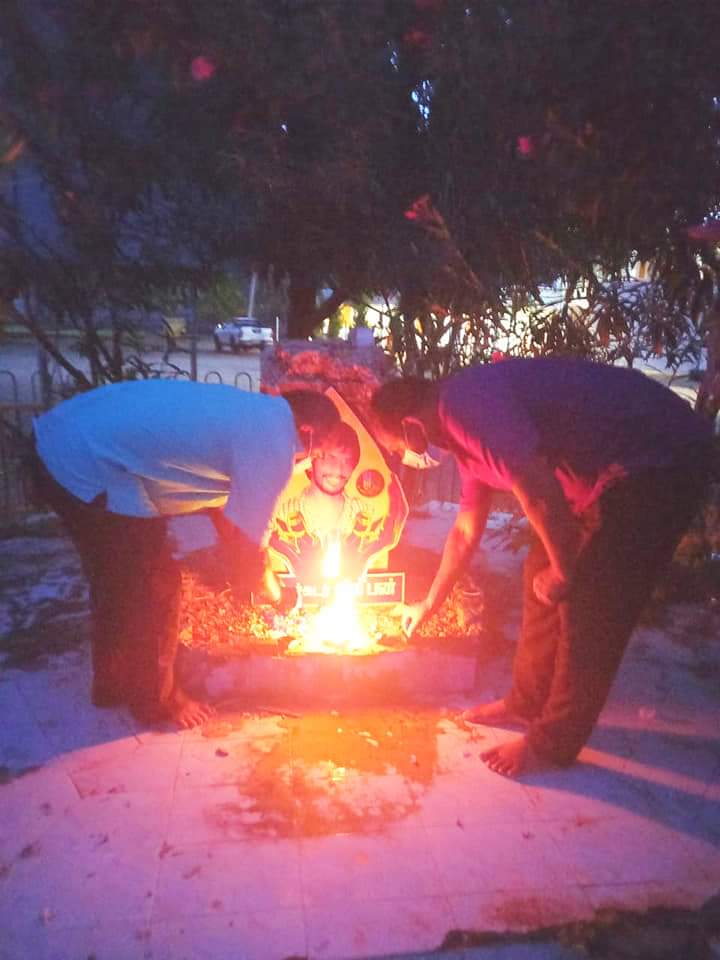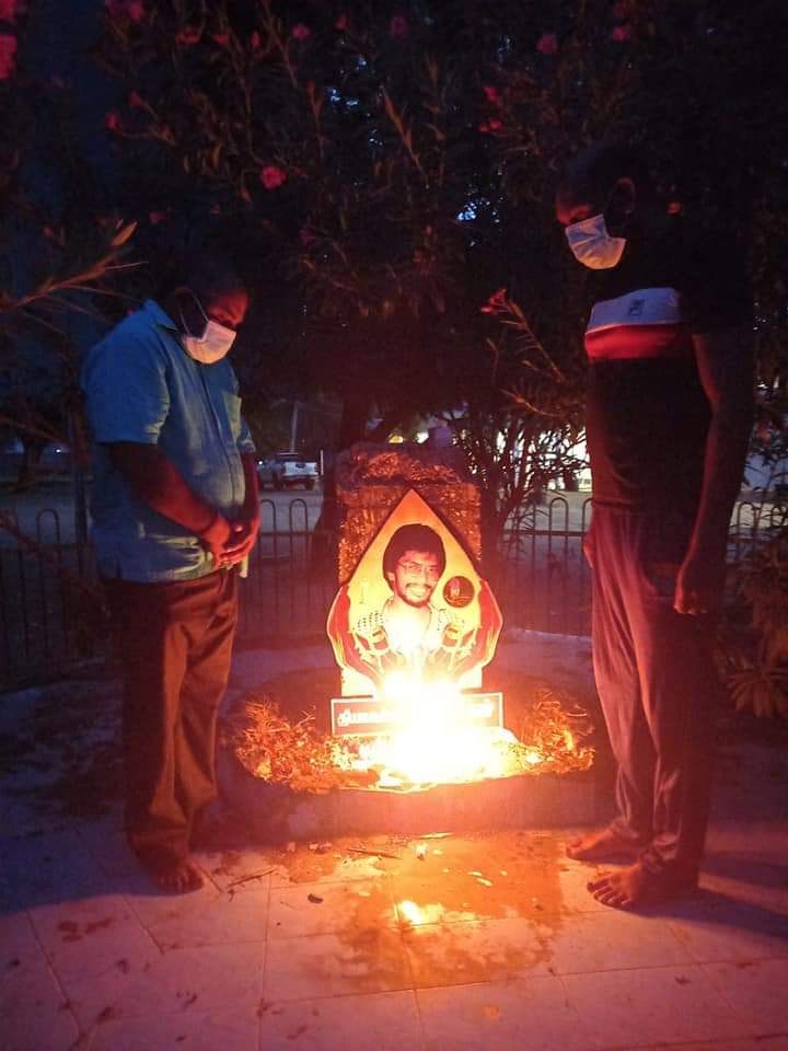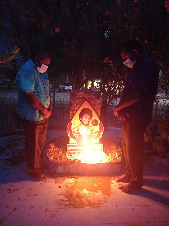 ஈழச்செய்திகள்சிறப்பு செய்திகள் யாழில் தியாகதீபம் திலீபன் அவர்களின் இரண்டாம் நாள் நினைவேந்தல்! By Admin - September 16, 2021 0 435 யாழ். நல்லூரில் அமைந்துள்ள தியாக தீபம் லெப்.கேணல் திலீபன் அவர்களின் நினைவுத்தூபிப் பகுதியில் இரண்டாம் நாளாக இன்று வியாழக்கிழமை தமிழ்த்தேசிய மக்கள் முன்னணியினரால் நினைவேந்தல் இடம்பெற்றுள்ளது.