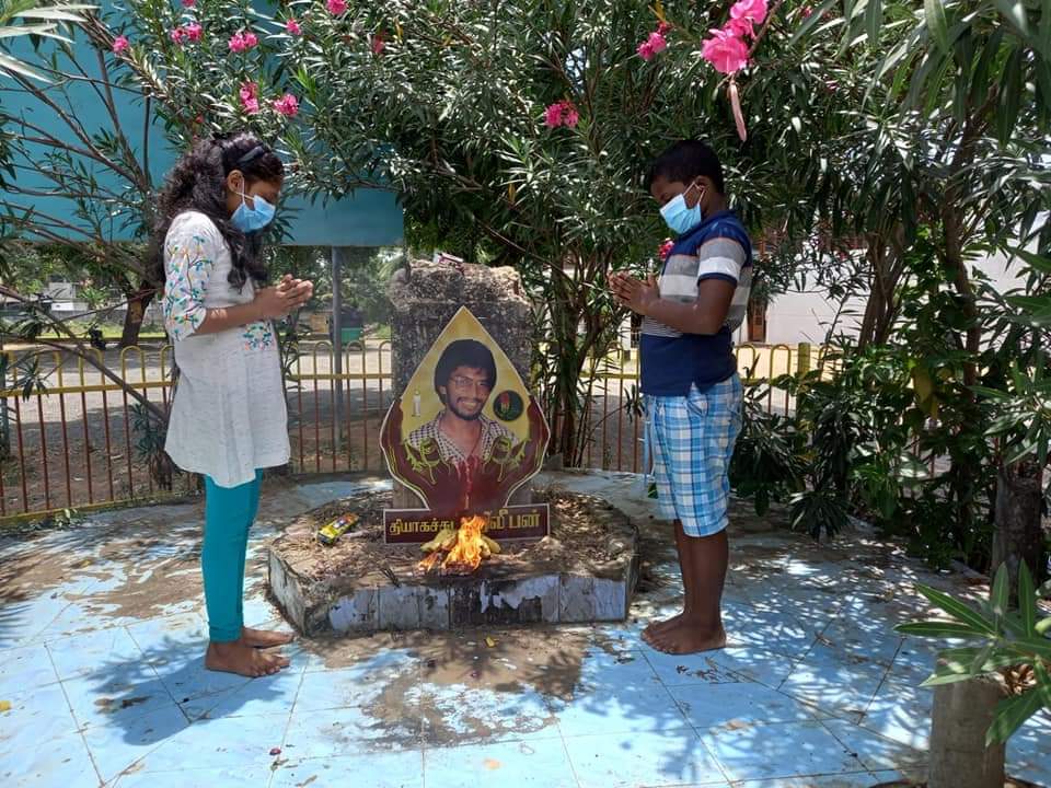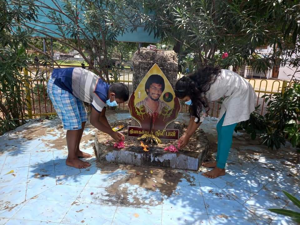 ஈழச்செய்திகள்சிறப்பு செய்திகள் யாழில் இன்று நான்காம் நாள் தியாக தீபத்திற்கு அஞ்சலி! By Admin - September 18, 2021 0 464 யாழில் தியாக தீபம் நினைவுத் தூபி அமைந்துள்ள நல்லூர் பகுதியில் இன்று சனிக்கிழமை நான்காம் நாள் தியாக தீபத்திற்கு தமிழ்த் தேசிய மக்கள் முன்னணியின் ஏற்பாட்டில் அஞ்சலி செலுத்தப்பட்டது.