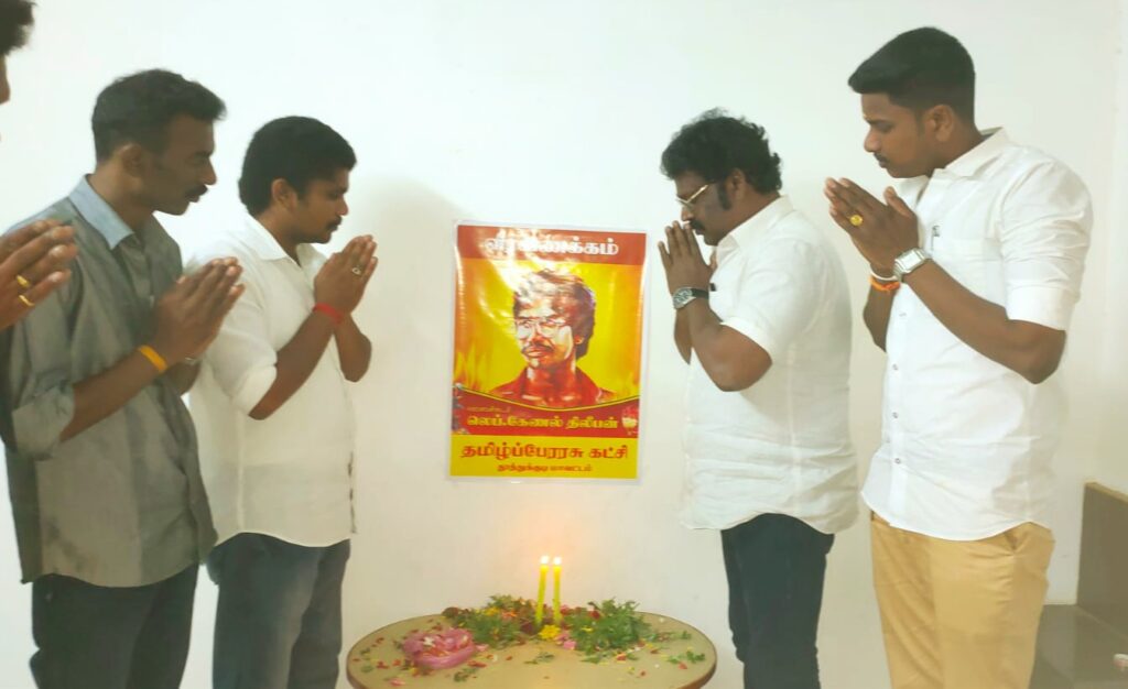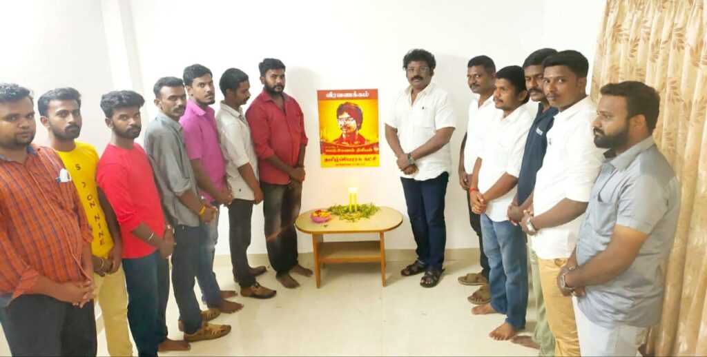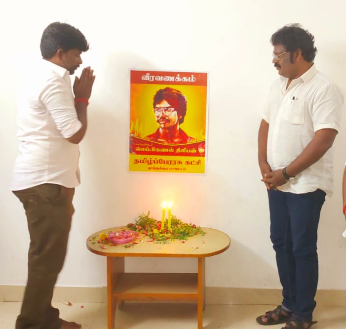 தூத்துக்குடி மாவட்டம் கோவில்பட்டியில் தமிழ்ப் பேரரசு கட்சியின் சார்பாக “தியாக தீபம்” திலீபன் அவர்களின் 34ஆவது நினைவு தின நிகழ்வு நடைபெற்றது. இந்நிகழ்ச்சியில் தமிழ்ப் பேரரசு கட்சியின் பொதுச் செயலாளர் வ.கௌதமன், ஒருங்கிணைந்த தூத்துக்குடி மாவட்ட செயலாளர் வேல்முருகன் | தமிழ்ப் பேரரசு கட்சியின் மாநில வழக்கறிஞர் அணி செயலாளர் சரவணன் உள்ளிட்ட தமிழ்ப் பேரரசு கட்சியின் தம்பிகள் கலந்துகொண்டு “தியாக தீபம்” திலீபன் அவர்களுக்கு நினைவஞ்சலி செலுத்தினர்.