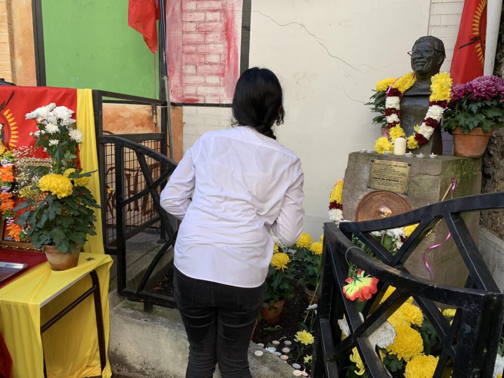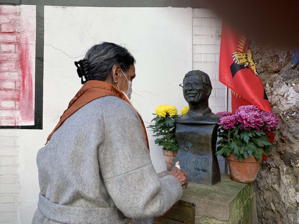 பிரிகேடியர் தமிழ்ச்செல்வன் அவர்களின் திருஉருவச்சிலைக்கும் கேணல் பரிதி அவர்களின் திரு உருவப் படத்திற்கும் கேணல் பரிதி அவர்களின் தாயார் மலர்மாலை அணிவித்தார்.