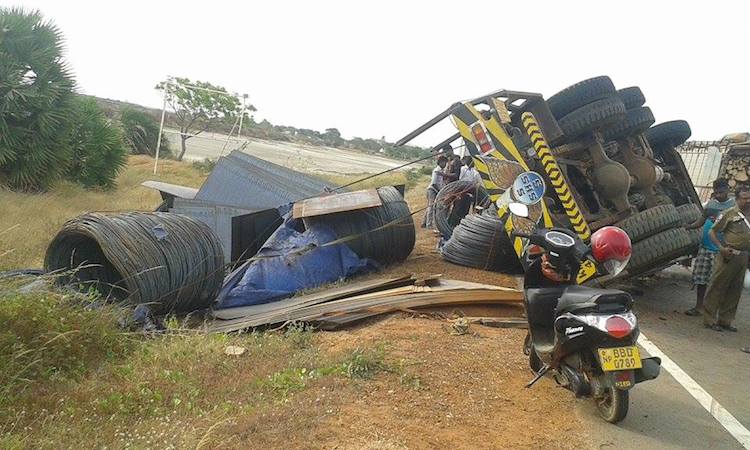 கொழும்பிலிருந்து இரும்புப் பொருட்களை கொள்வனவு செய்து கொண்டு, யாழ்ப்பாணம் நோக்கிச் சென்று கொண்டிருந்த பாரவூர்தி ஒன்று ஆனையிரவுப் பகுதியில் விபத்துக்குள்ளாகியுள்ளது.