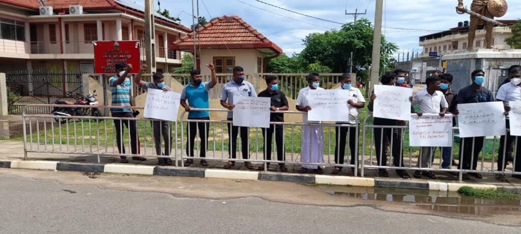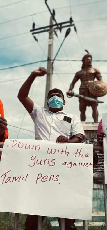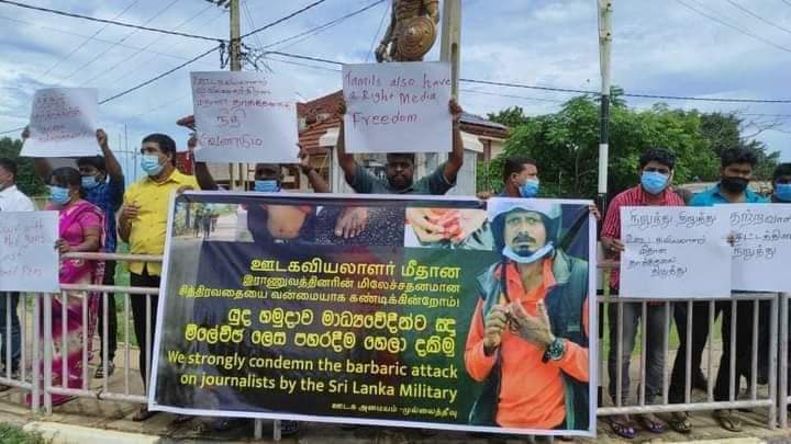 நேற்று மாவீரர் நாளில் ஊடகவியலாளர் விசுவலிங்கம் விசுவச்சந்திரன் இராணுவத்தினரால் கடுமையாக தாக்கப்பட்டதைக் கண்டித்தும் தாக்கிய இராணுவத்தை கைது செய்ய வலியுறுத்தியுமே குறித்த கண்டனப் போராட்டம் இடம்பெற்றது.