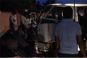 கட்டுநாயக்க விமான நிலையத்திலிருந்து யாழ்ப்பாணம் வல்வெட்டித்துறை நோக்கி பயணித்த வான் ஒன்று பாதைவிட்டு விலகி மதிலுடன் மோதியதாலேயே இந்த அனர்த்தம் நேர்ந்துள்ளது.