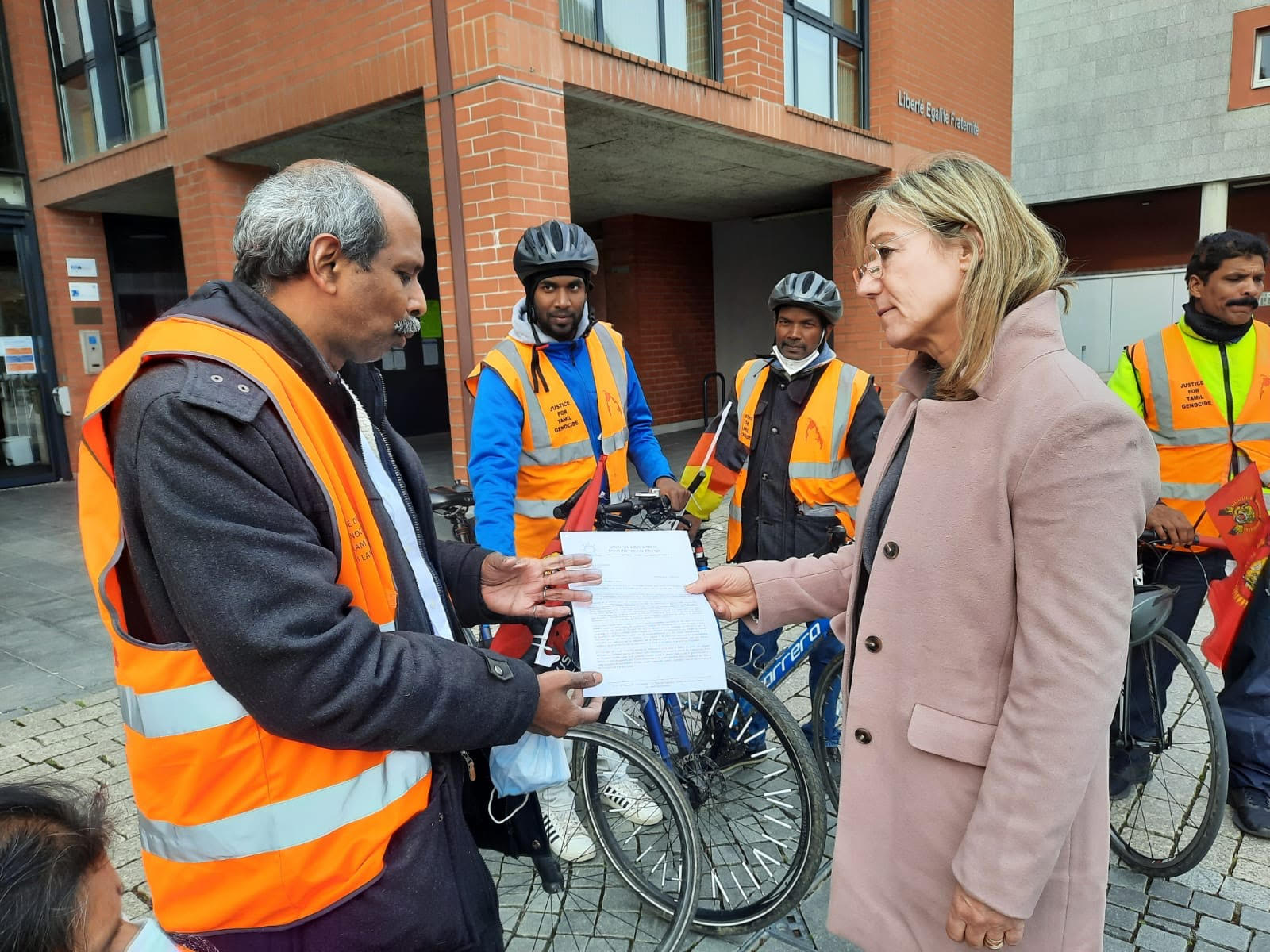 (02/03/2022) பிரான்சு நாட்டில் தொடர்ந்த மனித நேய ஈருருளிப்பயண அறவழிப்போராட்டம் முலூசு, சான்லூயி மாநகரசபைகளில் சந்திப்புக்களை மேற்கொண்டது. நடைபெற்ற சந்திப்புக்களில் தமிழினப் படுகொலைக்கு அனைத்துலக சுயாதீன விசாரணை வேண்டும் எனவும் தமிழீழமே நிரந்தர தீர்வு எனவும் கோரிக்கைகள் முன்வைக்கப்பட்டன.