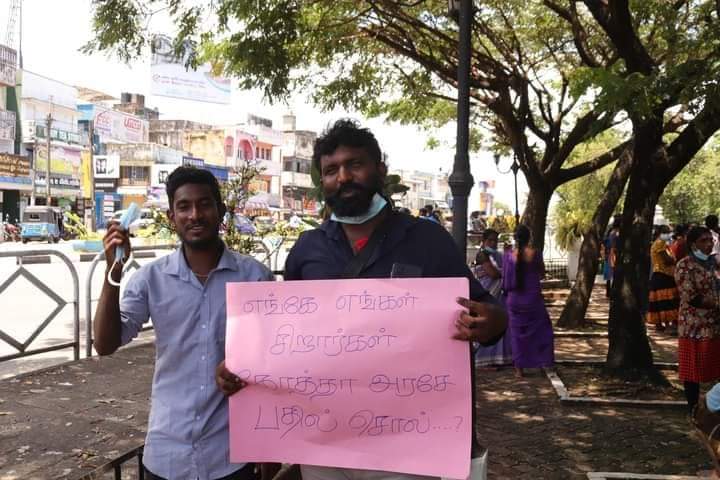 ஈழச்செய்திகள்சிறப்பு செய்திகள் மட்டக்களப்பில் காணாமல் ஆக்கப்பட்டோரின் உறவுகள் போராட்டம்! By Admin - March 7, 2022 0 150 மட்டக்களப்பு காந்தி பூங்காவில் இன்று(07.03.2022) காணாமல் ஆக்கப்பட்ட உறவுகளுக்கு நீதி கோரி அவர்களின் உறவுகளால் போராட்டம் ஒன்று முன்னெடுக்கப்பட்டது.