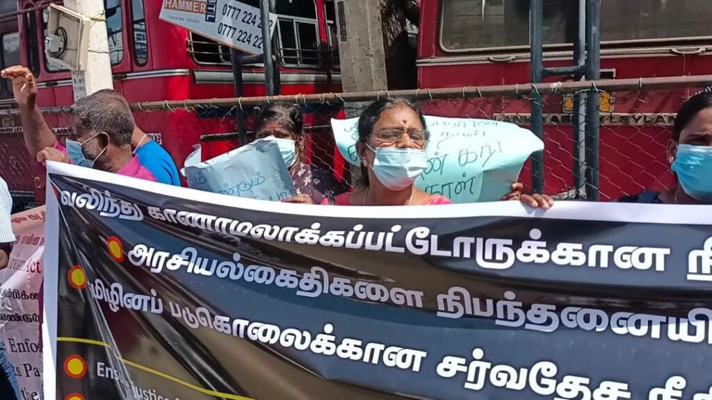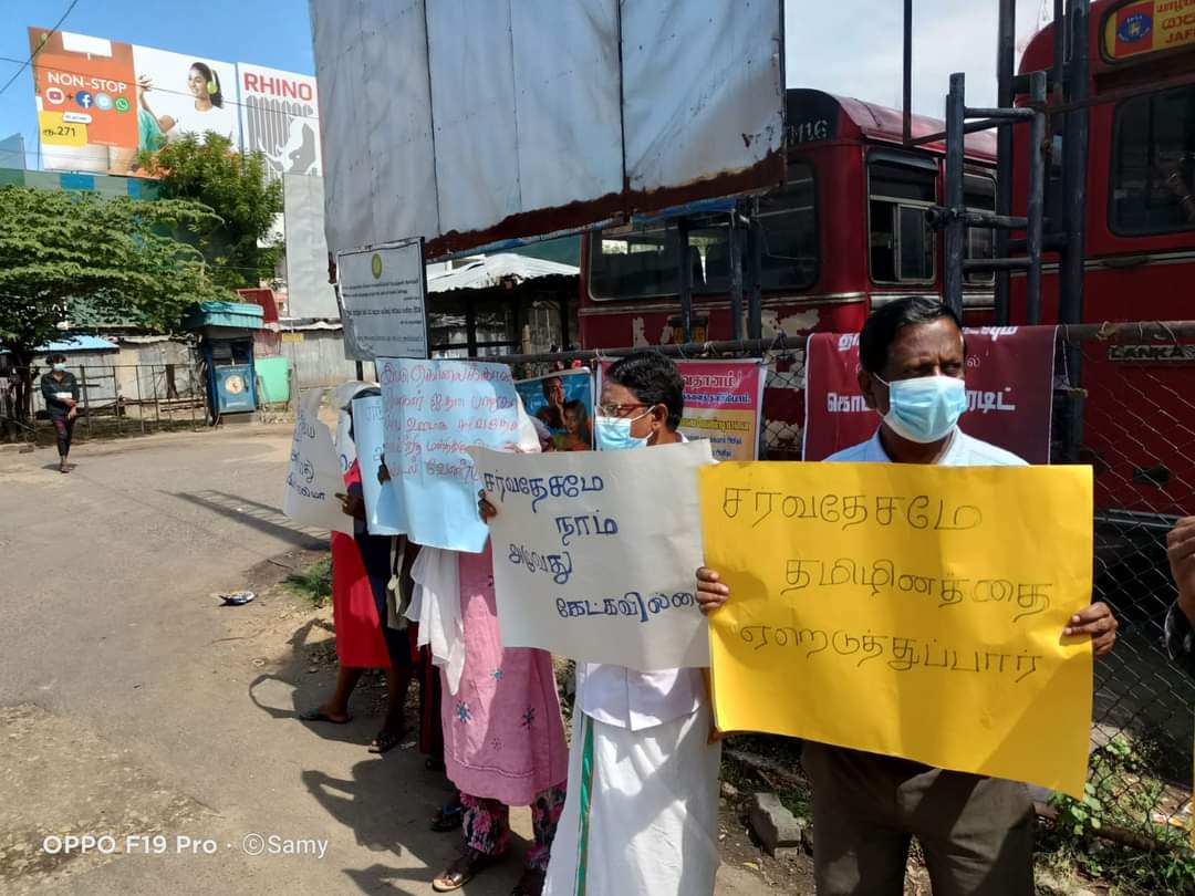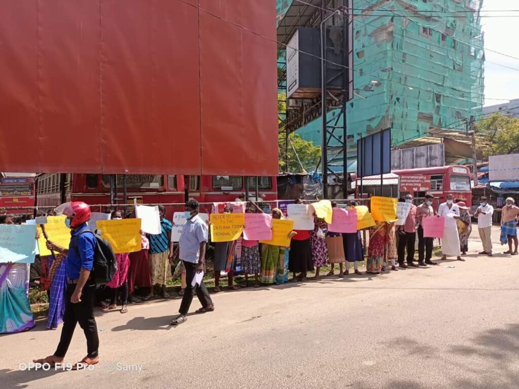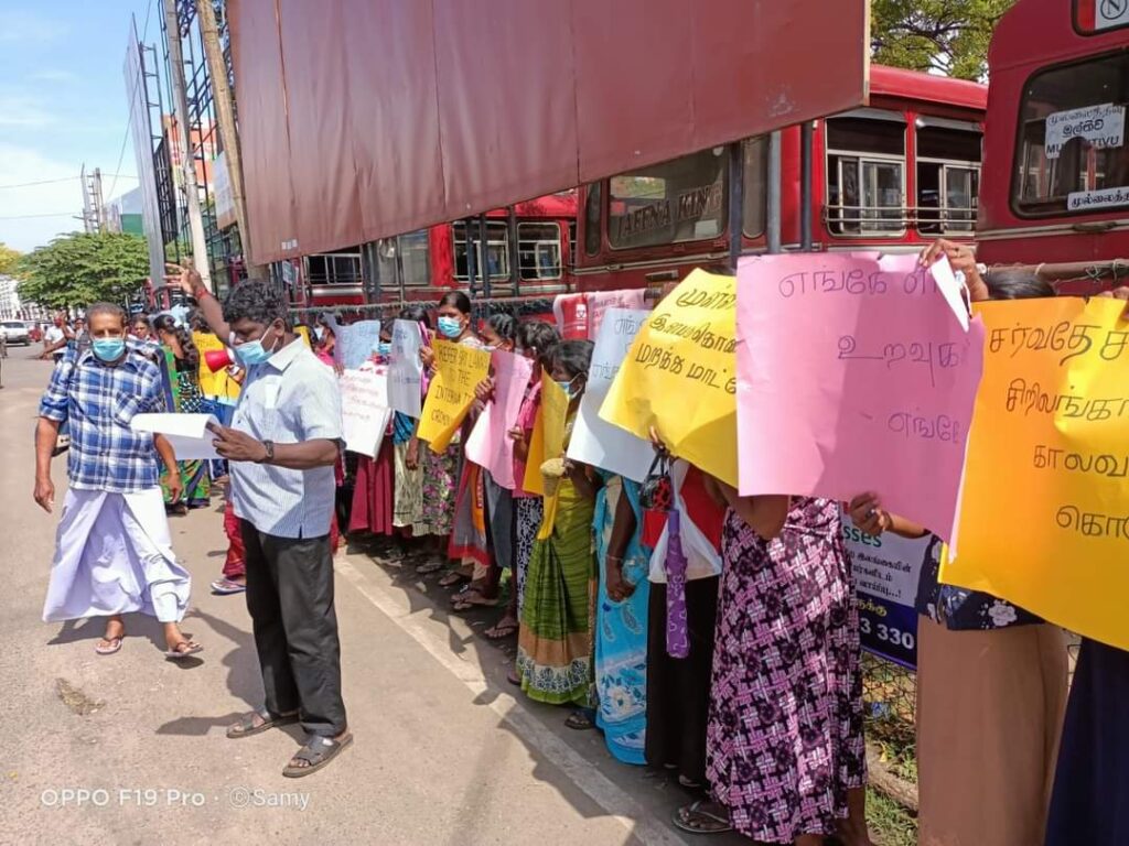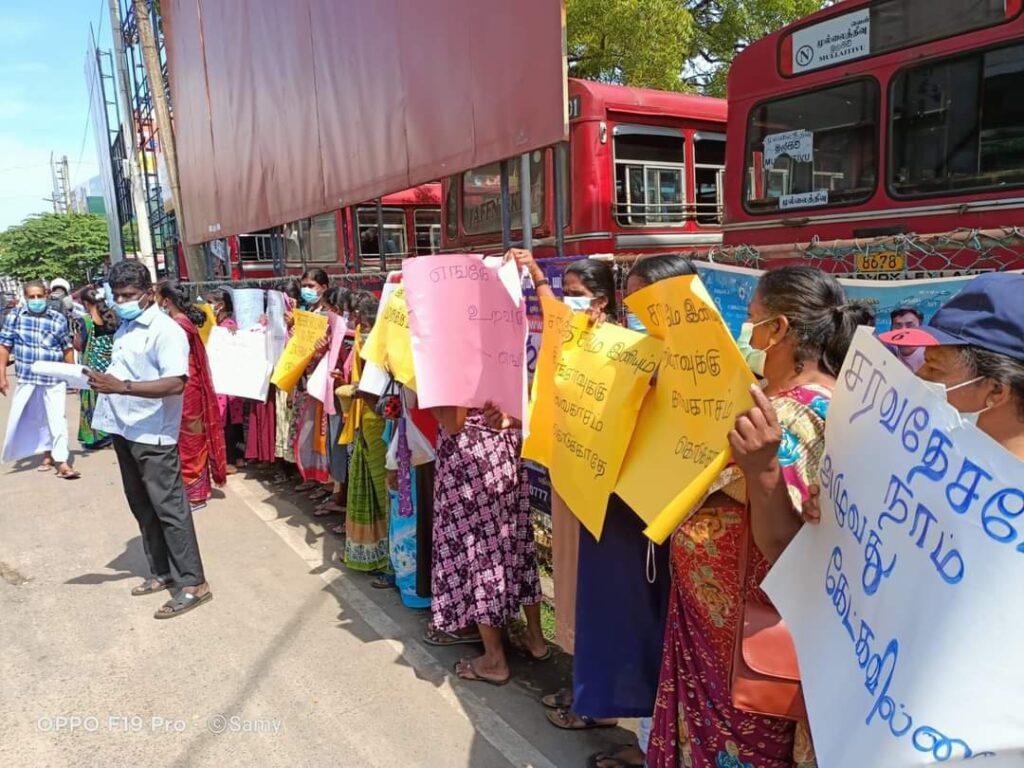 ஈழச்செய்திகள்சிறப்பு செய்திகள் யாழிலும் காணாமல் ஆக்கப்பட்டோரின் உறவுகள் போராட்டம்! By Admin - March 7, 2022 0 141 யாழ். பேருந்து நிலையத்திற்கு முன்பாக காணாமல் ஆக்கப்பட்ட உறவுகளுக்கு நீதி கோரி இன்று (07.03.2022) திங்கட்கிழமை அவர்களின் உறவுகளால் போராட்டம் ஒன்று முன்னெடுக்கப்பட்டது .
