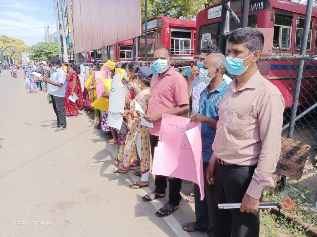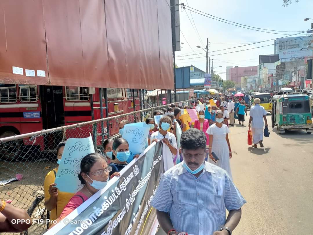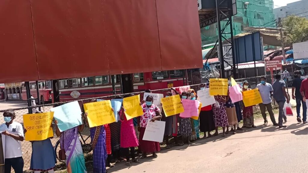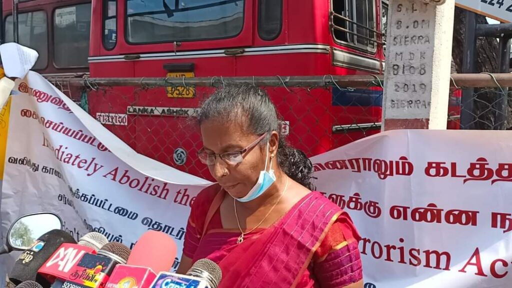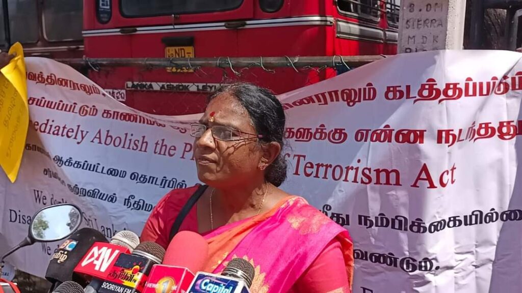 ஈழச்செய்திகள்சிறப்பு செய்திகள் யாழிலும் காணாமல் ஆக்கப்பட்டோரின் உறவுகள் போராட்டம்! By Admin - March 7, 2022 0 141 யாழ். பேருந்து நிலையத்திற்கு முன்பாக காணாமல் ஆக்கப்பட்ட உறவுகளுக்கு நீதி கோரி இன்று (07.03.2022) திங்கட்கிழமை அவர்களின் உறவுகளால் போராட்டம் ஒன்று முன்னெடுக்கப்பட்டது .