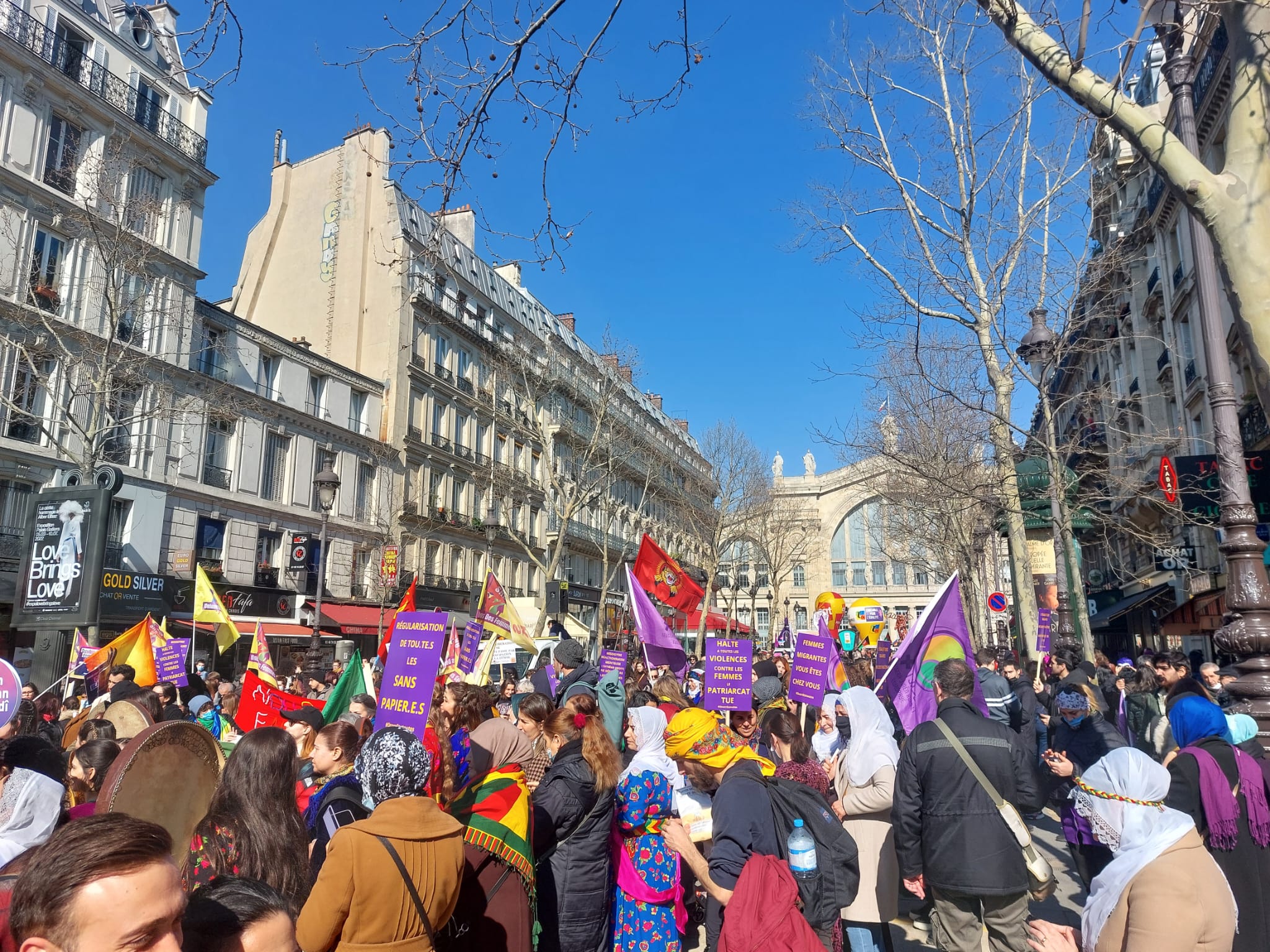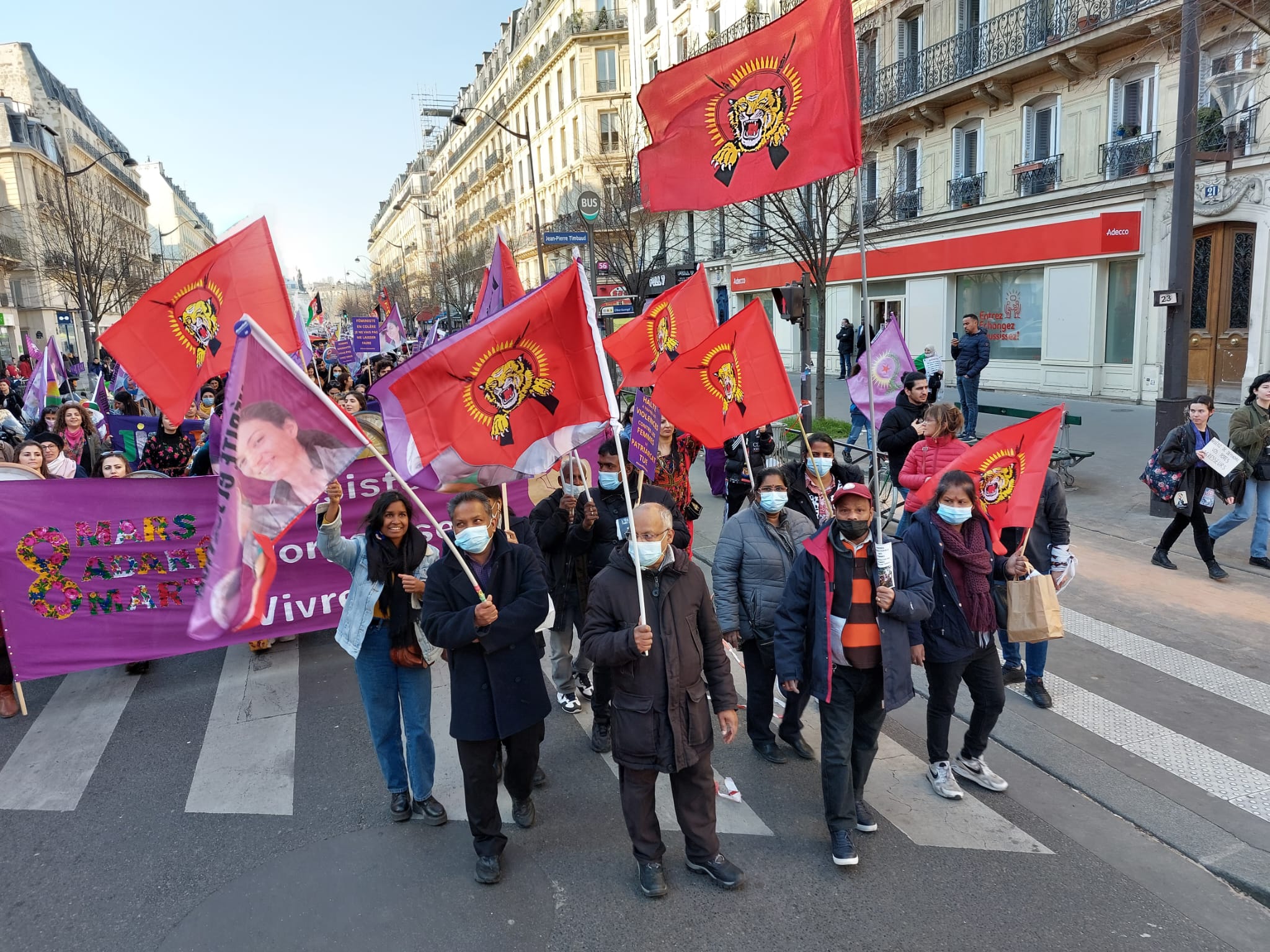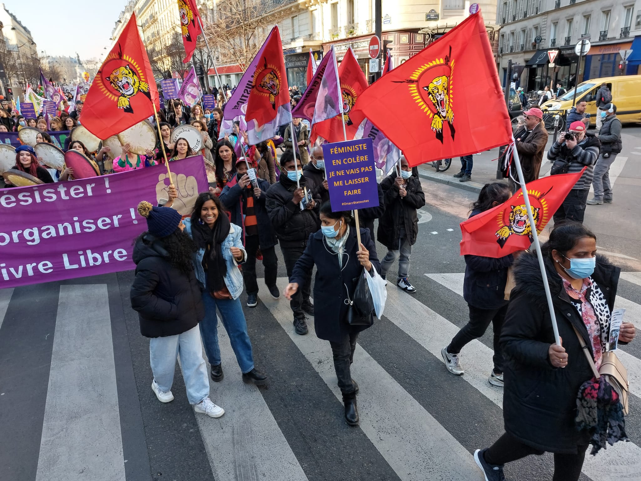 இப்பேரணியில் குர்திஸ்தான் பெண்கள் அமைப்பினருடன் பிரான்சு தமிழ்பெண்கள் அமைப்பினரும் இணைந்து தமிழீழத் தேசியக் கொடிகளை ஏந்தியவாறு எழுச்சிகொண்டிருந்தனர்.
