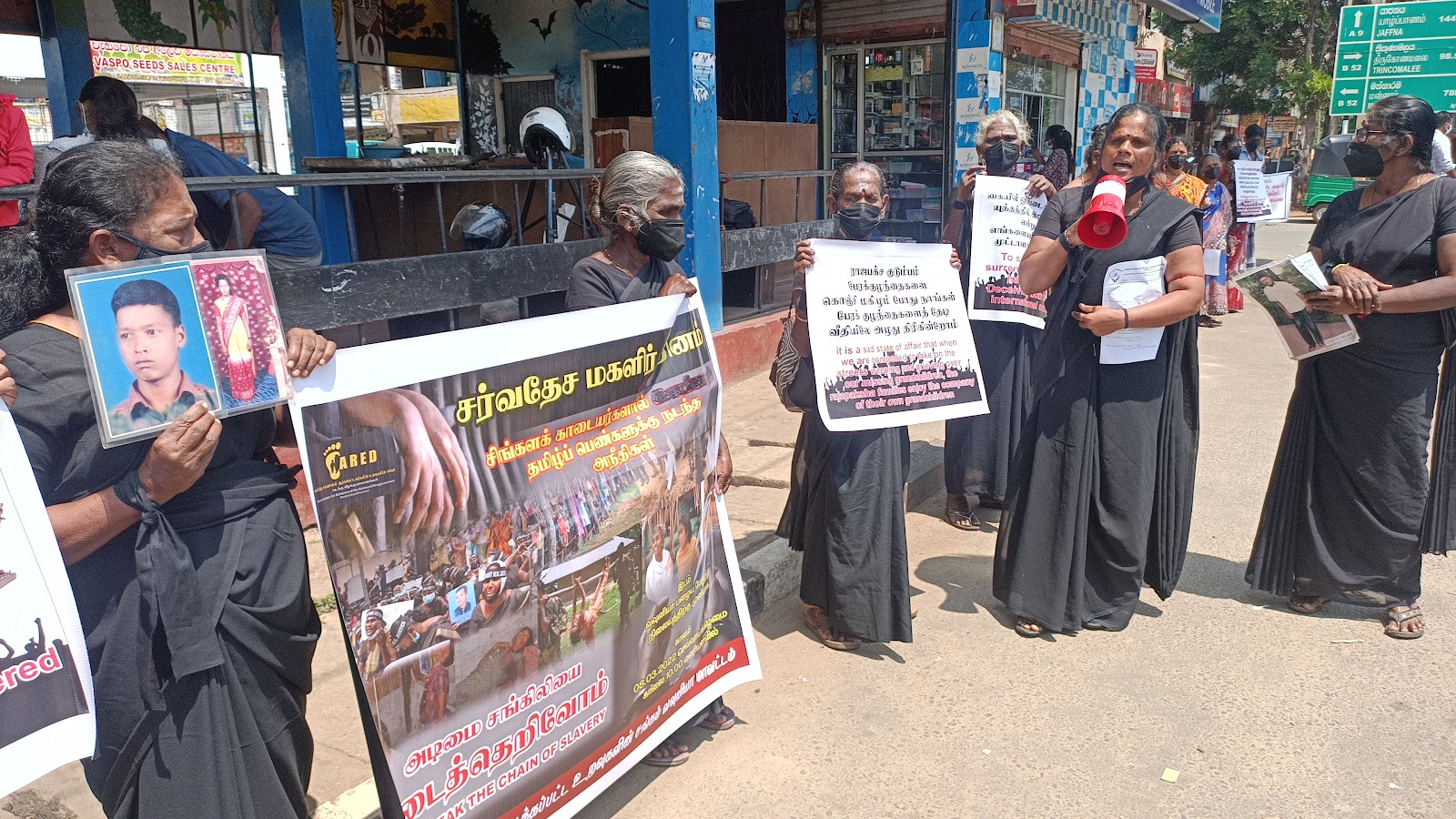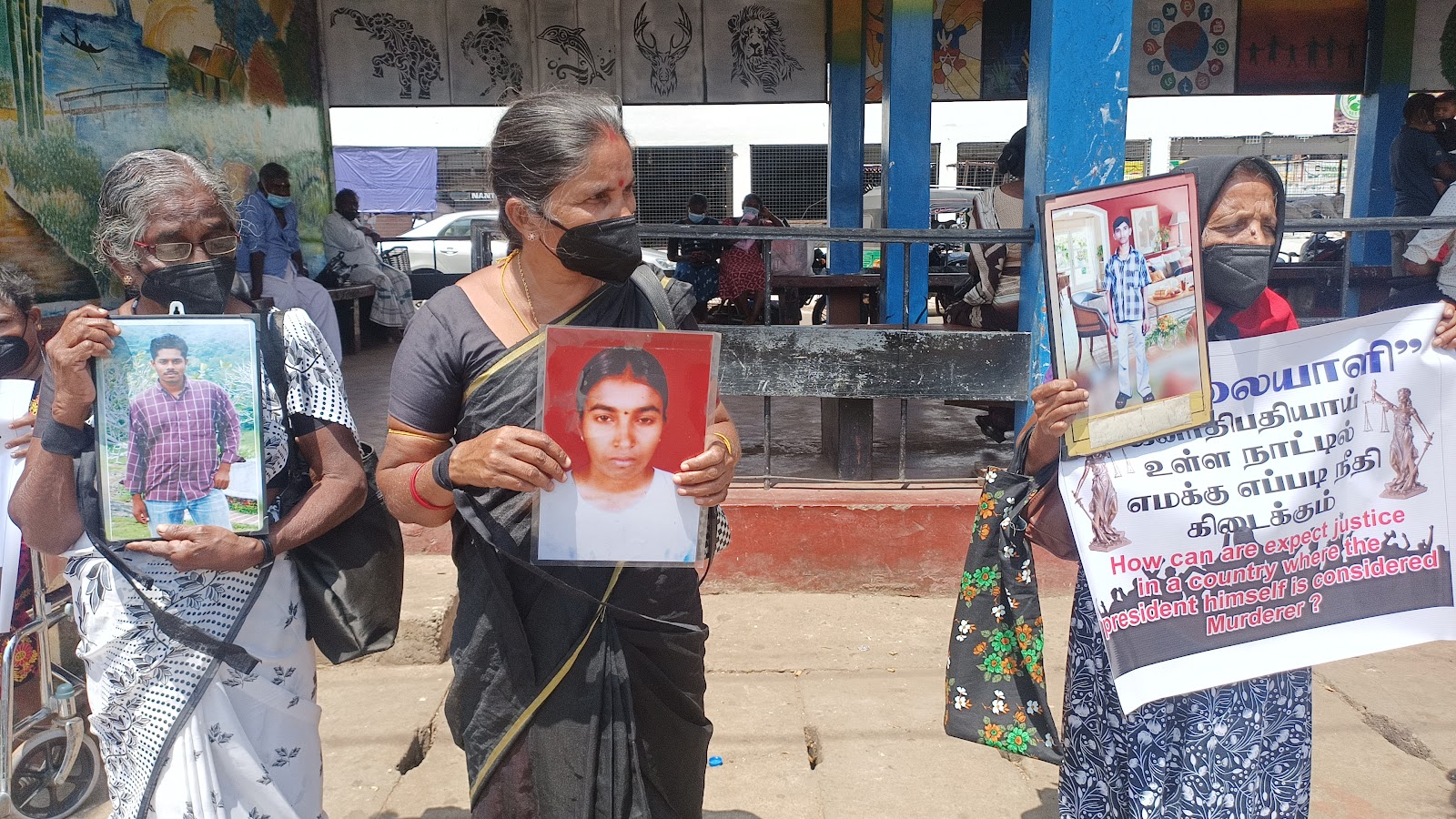 அடிமை சங்கிலியை உடைத்தெறிவோம், குடும்பங்களாக சரணடையும் போது அவர்களுடன் சேர்ந்து சரணடைந்த 29 ற்கு மேற்பட்ட குழந்தைகள் எங்கே? , யுத்தம் முடிவடைந்த பின் கையில் ஒப்படைக்கப்பட்ட பெண் பிள்ளைகளை என்ன செய்தீர்கள்? போன்றவாறான பதாதைகளை ஏந்திய வண்ணம் போராட்டத்தில் ஈடுபட்டிருந்தனர்.